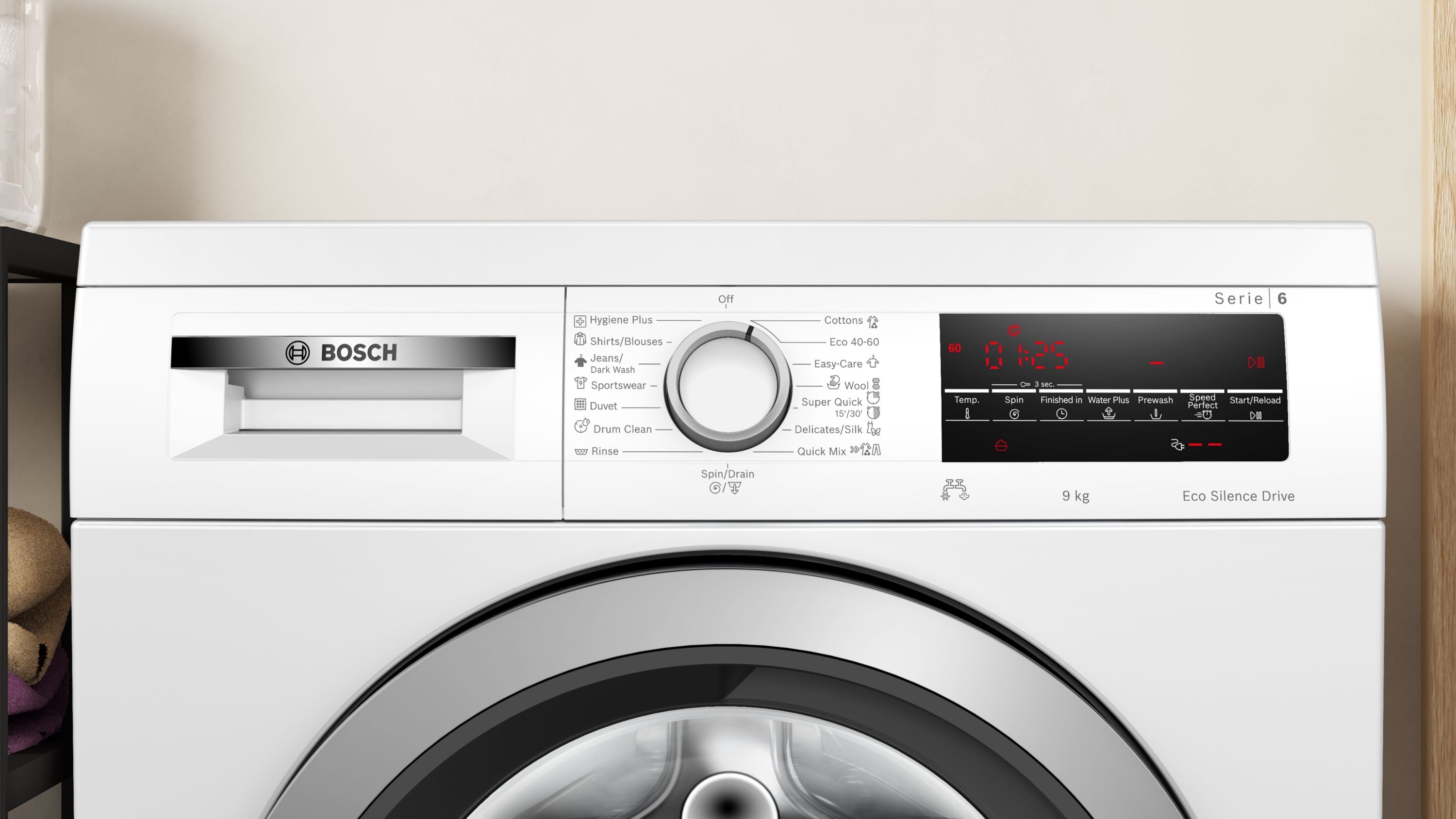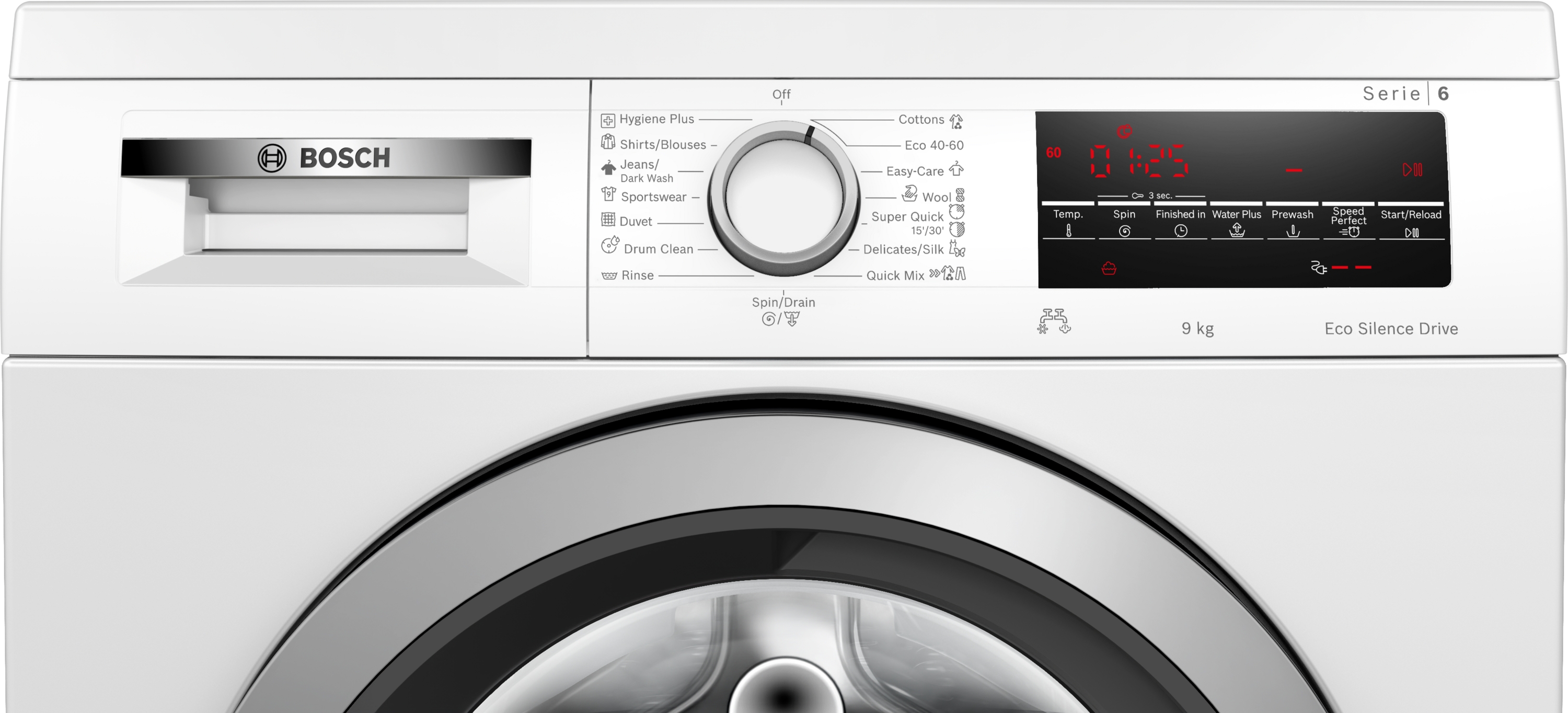 možnost připojení i na teplou vodu šetřící energii Výkon a spotřeba třída energetické účinnosti:¹ A energie² / voda³: 49 kWh / 50 l kapacita náplně: 1 - 9 kg doba trvání programu:⁴ 3:48 h:min třída účinnosti odstředění: B rychlost odstřeďování:** 400 - 1400 ot./min hladina hluku: 72 dB (A) re 1 pW třída hlučnosti: A Programy standardní programy: bavlna, snadno udržovatelné, jemné/hedvábí, vlna/ruční praní speciální programy: čištění bubnu s funkcí připomenutí, košile/halenky, Hygiena Plus, džíny/tmavé prádlo, odstřeďování/odčerpání, rychlý/mix, sport/fitness, máchání, přikrývky, super rychlý 15'/30' Speciální funkce a nastavení Speed Perfect: perfektně vyprané za až o 65 % méně času*** TouchControl tlačítka: odložení konce programu, start/pauza s reload funkcí (možnost doplnění prádla), teplota, SpeedPerfect, předpírka, voda plus, nastavení počtu otáček/stop máchání Komfort a bezpečnost funkce Reload: máte možnost přidat prádlo dokonce i po začátku pracího cyklu velký LED displej s ukazateli průběhu programu, nastavené teploty, počtu otáček, zbytkového času v minutách a nastavení konce praní až za 24 hod., doporučené náplně a indikace spotřeby objem bubnu: 65 l počítadlo používání: zaznamenává počet dokončených programů Vario Drum nerezový buben: šetrné a intenzivní praní čištění bubnu s funkcí připomenutí plnicí otvor o průměru 32 cm, barva dvířek stříbrno-černošedá s úhlem otevírání 171° funkce Reload / pauza Eco Silence Drive: tichý asynchronní motor s dlouhou životností Active Water Plus: pro vysoce efektivní využití vody i při menším množství prádla díky automatické detekci naplnění AntiVibration Design: zaručuje vyšší stabilitu a tišší chod Aqua Protection - několikanásobná ochrana proti škodám způsobeným vodou otočný volič systém rozpoznání pěny k jejímu odstranění při nadměrném pěnění kontrola nevyváženosti dětský zámek ovládání akustický signál ukončení programu jednoduše čistitelná přihrádka na prací prostředky nástavec na tekutý prací prostředek Technické informace možnost použití se spojovací sadou pro sušičky možnost podstavby pod pracovní desku (po demontáži horní krycí desky spotřebiče) při výšce niky 82 cm rozměry (V x Š): 84.5 cm x 59.8 cm hloubka spotřebiče: 59.0 cm hloubka spotřebiče vč. dvířek: 63.2 cm hloubka spotřebiče s otevřenými dvířky: 106.3 cm krycí deska na ochranu proti vlhkosti