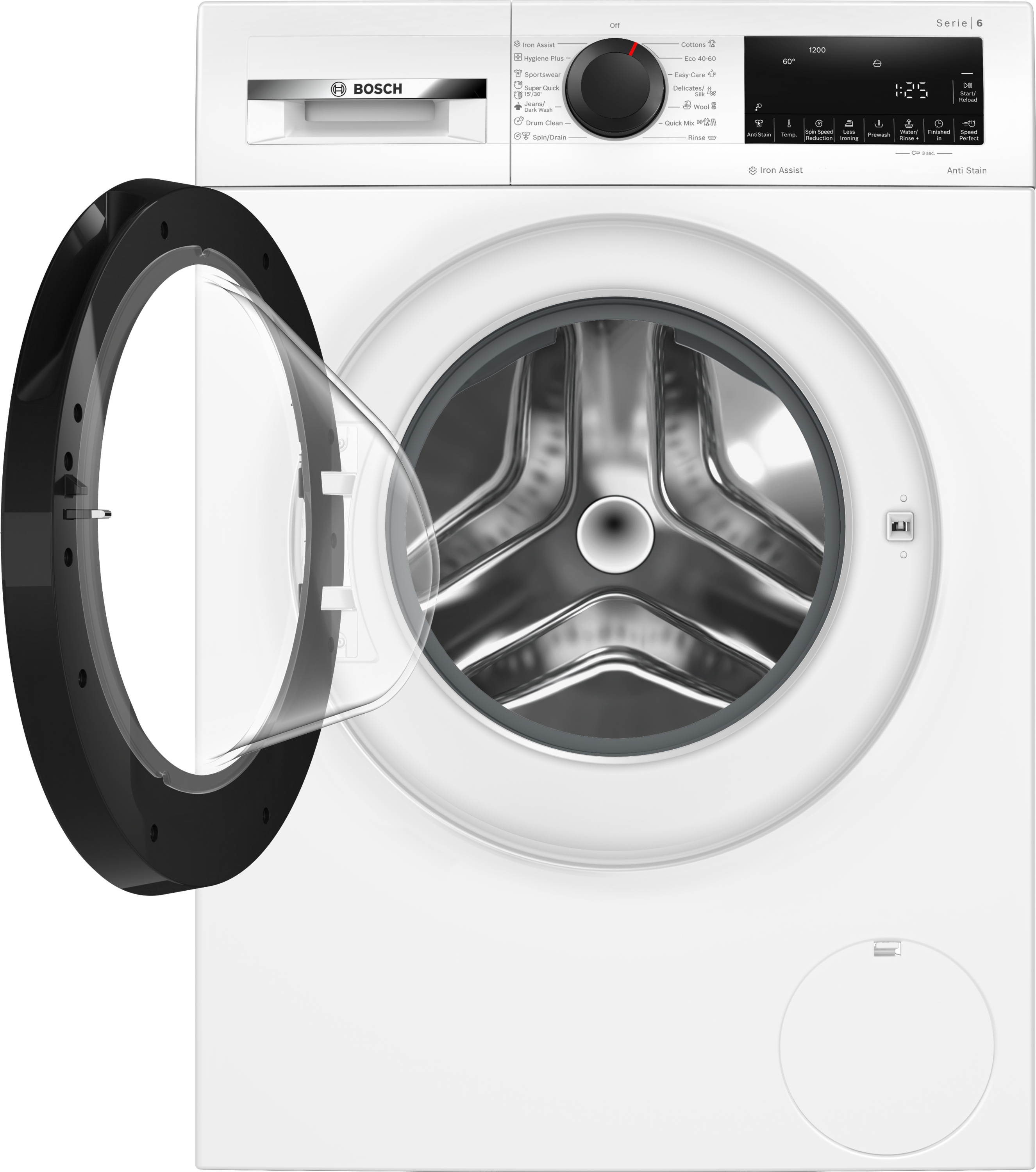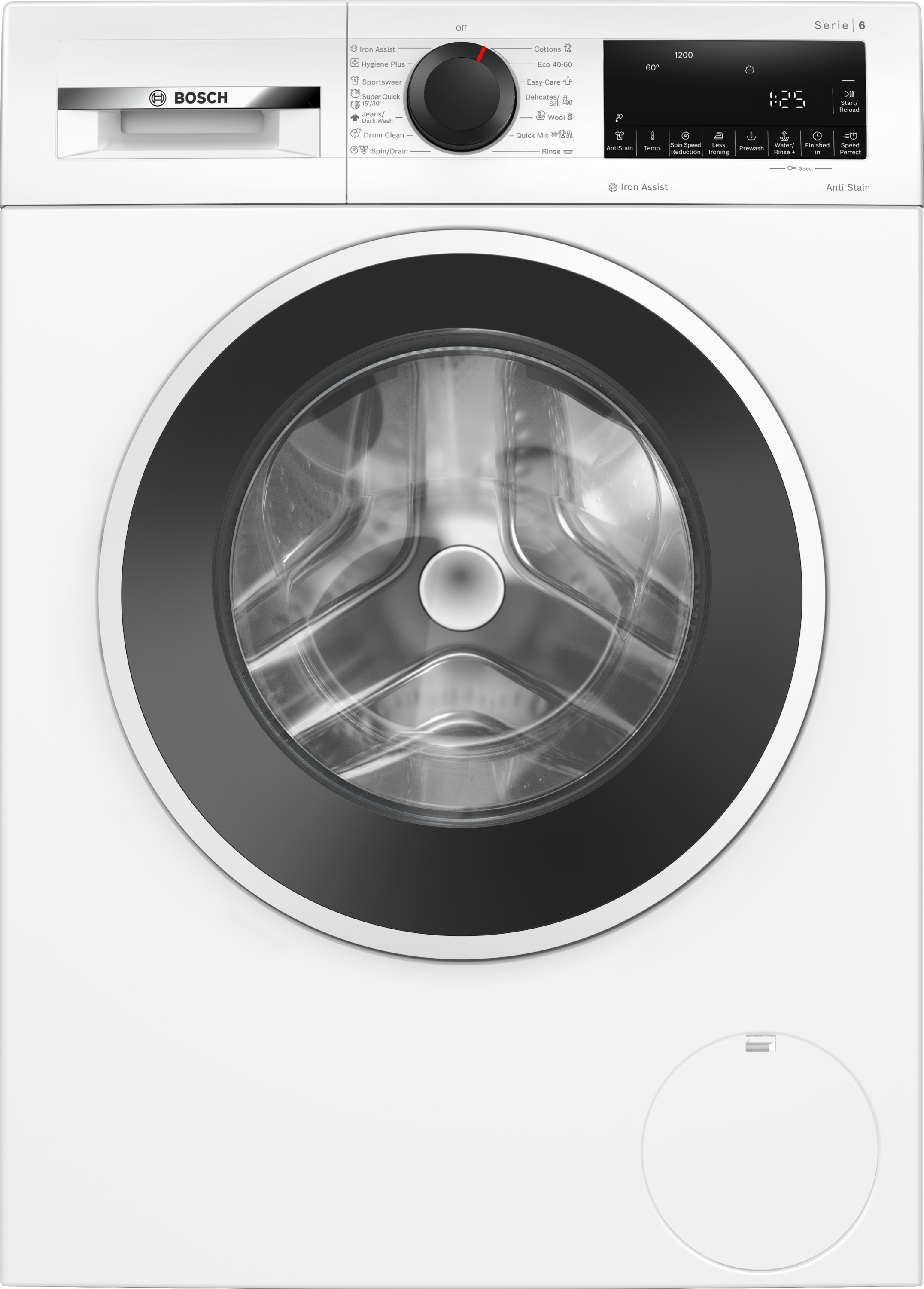 Výkon a spotřeba třída energetické účinnosti:¹ A energie² / voda³: 49 kWh / 50 l kapacita náplně: 1 - 9 kg doba trvání programu:⁴ 3:48 h:min třída účinnosti odstředění: B rychlost odstřeďování:** 400 - 1200 ot./min hladina hluku: 71 dB (A) re 1 pW třída hlučnosti: A Programy standardní programy: bavlna, snadno udržovatelné, jemné/hedvábí, vlna/ruční praní Iron Assist: parní program, který redukuje pomačkání suchého oblečení speciální programy: čištění bubnu s funkcí připomenutí, Iron Assist, Hygiena Plus, džíny/tmavé prádlo, odstřeďování/odčerpání, rychlý/mix, sport/fitness, máchání, super rychlý 15'/30' Speciální funkce a nastavení Speed Perfect: perfektně vyprané za až o 65 % méně času*** Anti Stain systém: s funkcí pro odstranění 4 typů skvrn, kterou je možné nastavit u standardních programů TouchControl tlačítka: snadné žehlení, odložení konce programu, volba skvrn, start/pauza s reload funkcí (možnost doplnění prádla), teplota, SpeedPerfect, předpírka, nastavení počtu otáček, voda a máchání plus/stop máchání Komfort a bezpečnost funkce Reload: máte možnost přidat prádlo dokonce i po začátku pracího cyklu velký LED displej s ukazateli: průběhu programu, nastavené teploty, počtu otáček, ukazatele zbytkového času v minutách a nastavení konce praní až za 24 hod., doporučení náplně program hygiena: praní prádla a zároveň účinné ničení choroboplodných zárodků objem bubnu: 65 l počítadlo používání: zaznamenává počet dokončených programů Vario Drum nerezový buben: šetrné a intenzivní praní čištění bubnu s funkcí připomenutí plnicí otvor o průměru 32 cm, barva dvířek bílo–černošedá s úhlem otevírání 160° funkce Reload / pauza Eco Silence Drive: tichý asynchronní motor s dlouhou životností Active Water Plus: pro vysoce efektivní využití vody i při menším množství prádla díky automatické detekci naplnění AntiVibration Design: zaručuje vyšší stabilitu a tišší chod Aqua Protection - několikanásobná ochrana proti škodám způsobeným vodou otočný volič systém rozpoznání pěny k jejímu odstranění při nadměrném pěnění kontrola nevyváženosti dětský zámek ovládání akustický signál ukončení programu jednoduše čistitelná přihrádka na prací prostředky nástavec na tekutý prací prostředek Technické informace možnost použití se spojovací sadou pro sušičky možnost zasunutí pod pracovní desku ve výšce 85 cm rozměry (V x Š): 84.5 cm x 59.8 cm hloubka spotřebiče: 58.8 cm hloubka spotřebiče vč. dvířek: 63.2 cm hloubka spotřebiče s otevřenými dvířky: 104.9 cm