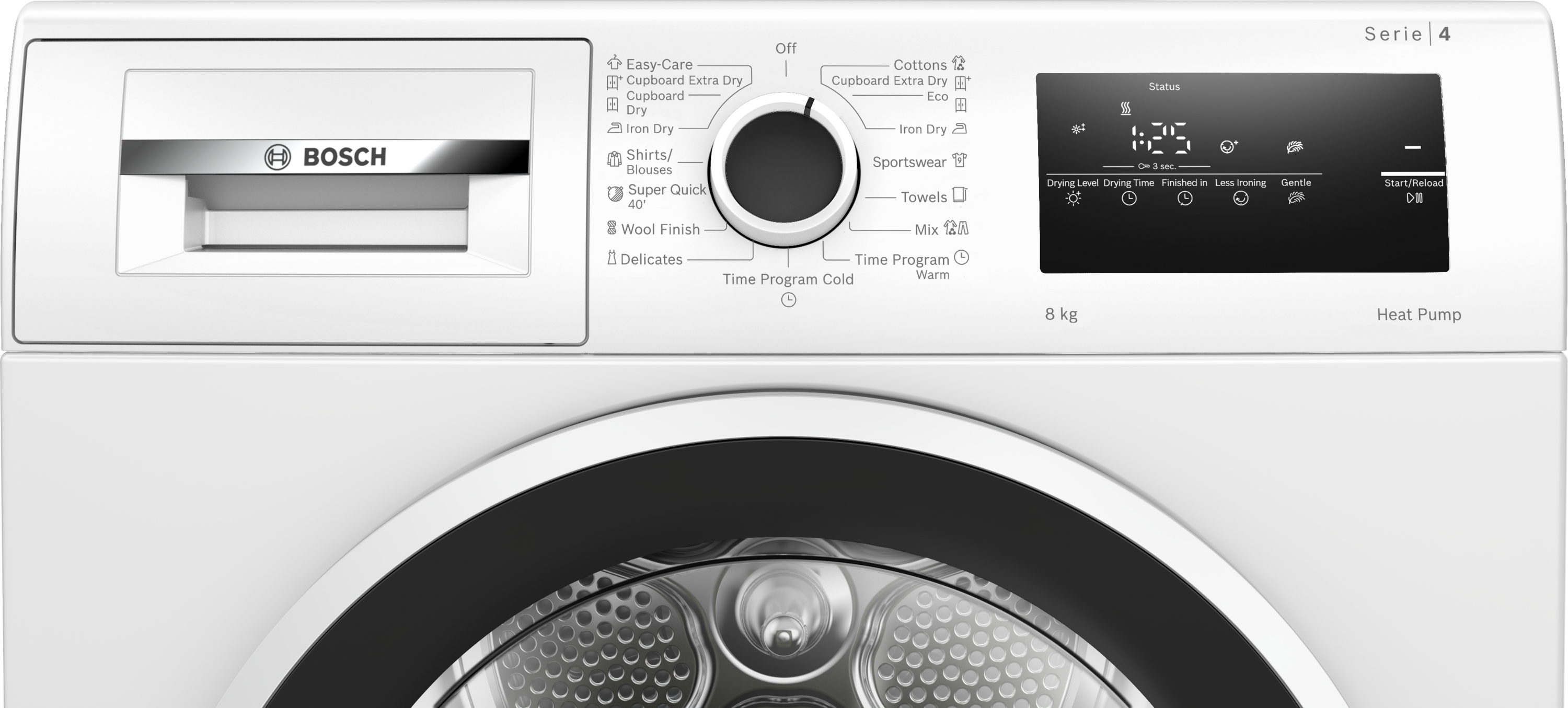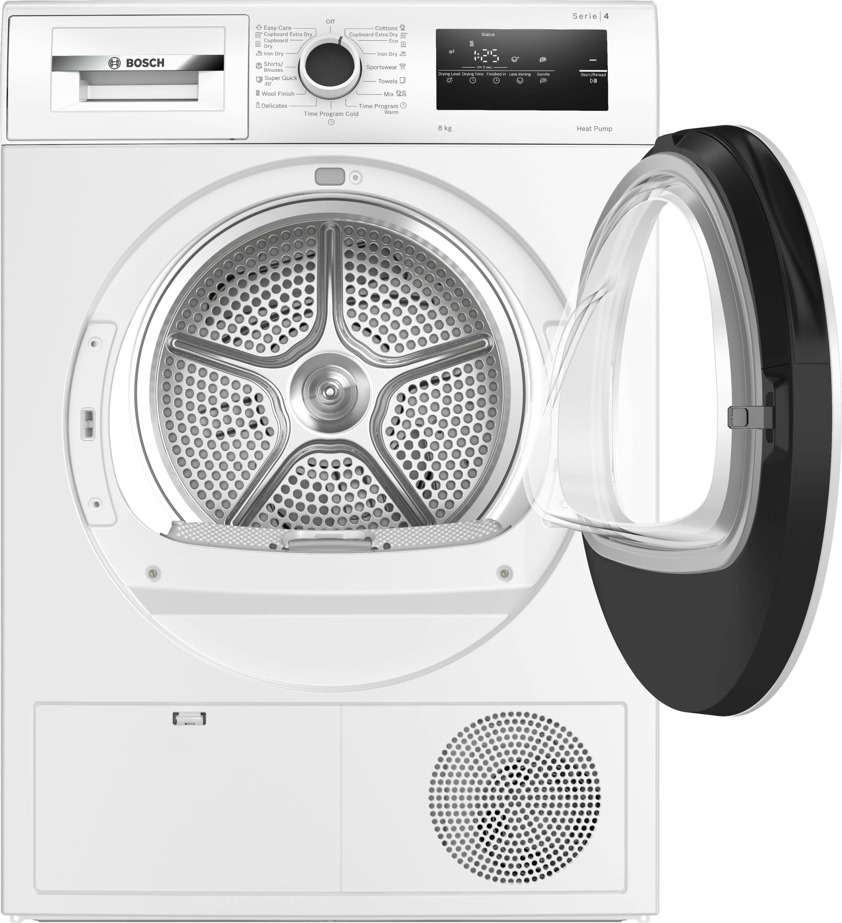Výkon a spotřeba třída energetické účinnosti:¹ E energie:² 138 kWh jmenovitá kapacita:³ 8 kg doba trvání:³ 3:25 h:min třída hluku: B (na stupnici od A do D) hladina hluku:³ 63 dB (A) na 1 pW třída účinnosti kondenzace: C (na stupnici od A do D) účinnost kondenzace:³ 83% Programy standardní programy: bavlna, snadno udržovatelné speciální programy: košile/halenky, jemné, ručníky, mix, rychlý 40', sport/fitness, vlna závěr, časový program studený, časový program teplý Speciální funkce a nastavení TouchControl tlačítka: šetrný, snadné žehlení, délka programu, jemné nastavení stupně sušení, 24 hod. odložení konce programu Komfort a bezpečnost EasyClean filtr pro jednoduchou údržbu technologie Auto Dry komfortní nastavení sušicích časových, senzorových a speciálních programů plně elektronickým otočným voličem LED displej s ukazatelem zbývajícího času a nastavení konce programu až za 24 hod., ukazatel průběhu programu a speciálních funkcí systém šetrného sušení SensitiveDrying: velký nerezový buben se speciální strukturou a unašeči s měkkým povrchem pro jemnou péči o prádlo AntiVibration Design: zaručuje vyšší stabilitu a tišší chod indikace plné kondenzační nádržky indikace pro vyčištění filtru dětský zámek ovládání cyklus načechrávání prádla po ukončení programu signál na konci programu skleněné dveře s plastovým krytím v barvě bílo–černošedá komfortní zavírání závěs dvířek: vpravo kovový háček zavírání dvířek Technické informace možnost zasunutí pod pracovní desku ve výšce 85 cm rozměry (V x Š): 84.2 cm x 59.8 cm hloubka spotřebiče: 61.3 cm hloubka spotřebiče vč. dvířek: 64.8 cm hloubka spotřebiče s otevřenými dvířky: 109.6 cm technologie tepelného čerpadla s chladivem R290 šetrným k životnímu prostředí