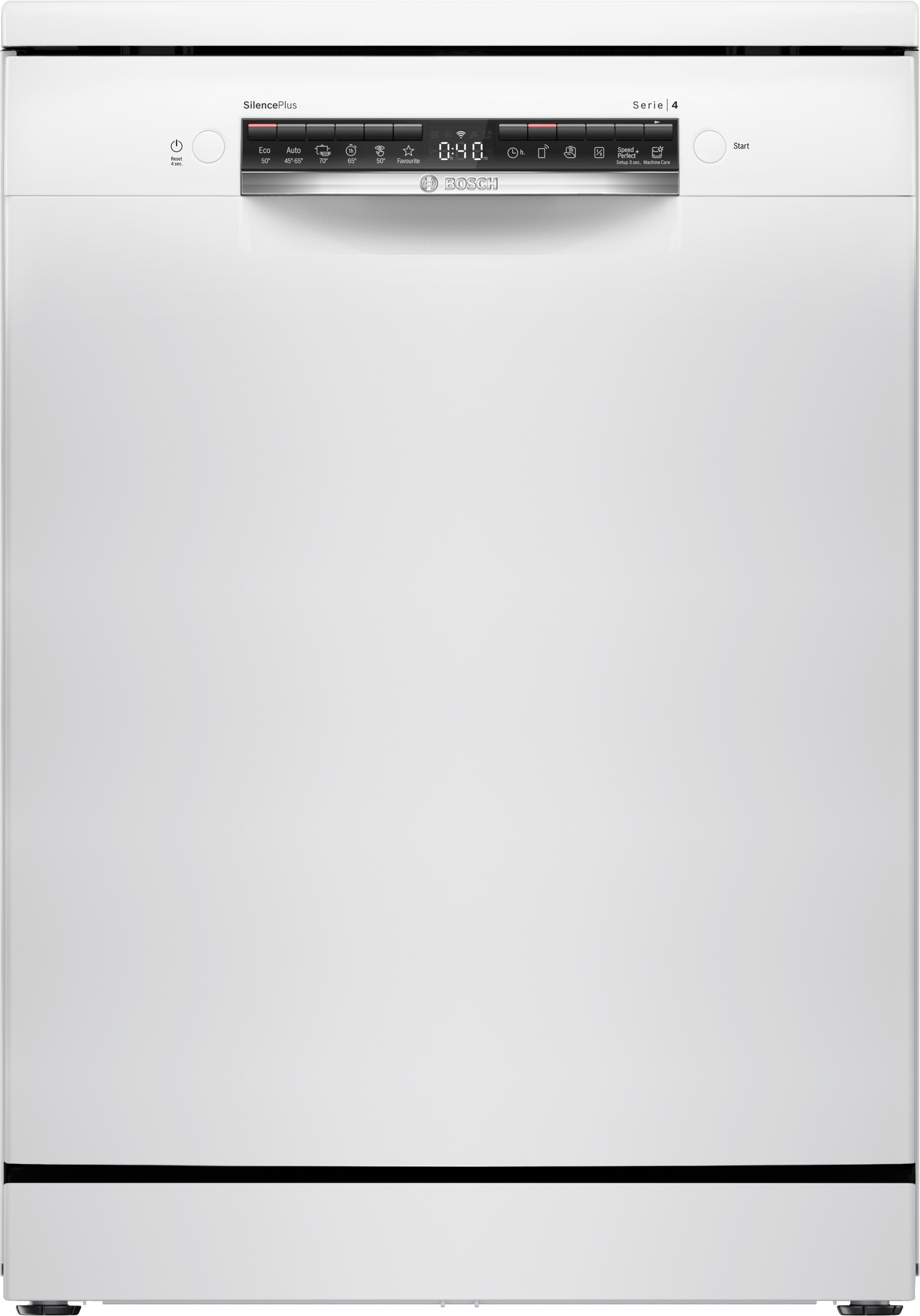 Výkon a spotřeba třída energetické účinnosti:¹ B energie² / voda³: 65 kWh / 9 l kapacita: 14 sad nádobí doba trvání programu:⁴ 3:55 h:min hladina hluku: 44 dB(A) re 1 pW třída hlučnosti: B hlučnost (Tichý program): 43 dB (A) re 1 pW Programy a speciální funkce 6 programů: Eco 50 °C, Auto 45-65 °C, Intenzivní 70 °C, Hodinový 65 °C, Tichý 50 °C, Oblíbený výchozí Oblíbený program: Předmytí 4 speciální funkce: Vzdálené zapnutí, EfficientDry, Poloviční náplň, SpeedPerfect+ program péče o myčku nádobí: Machine Care doplňkové funkce dostupné v aplikaci Home Connect: Hygiena Plus, Silence on demand Technologie mytí a senzory EfficientDry a výměník tepla AquaSenzor dávkovací asistent EcoSilence Drive automatické přizpůsobení dle druhu mycího prostředku samočisticí filtrační systém s třívrstvým zvlněným filtrem materiál vnitřní vany: nerezová ocel / polinox Systém košů VarioFlex systém košů příborová zásuvka VarioDrawer 3 výškově nastavitelné polohy horního koše pomocí systému Rackmatic kolečka s nízkým třením ve spodním koši zarážka proti vykolejení spodního koše 2 řady sklopných trnů na talíře v horním koši 4 řady sklopných trnů na talíře ve spodním koši 2 výklopné etažéry na šálky v horním koši Ukazatele stavu a obsluhy připojení Home Connect pomocí Wi-Fi popisky na panelu: anglický text ukazatel zbývajícího času programu v minutách časová předvolba 1-24 hod Bezpečnost AquaStop: záruka značky Bosch v případě poškození vodou - po celou dobu životnosti spotřebiče* elektronická blokace tlačítek systém šetrného mytí skla Příslušenství Rozměry rozměry spotřebiče (V x Š x H): 84.5 x 60 x 60 cm