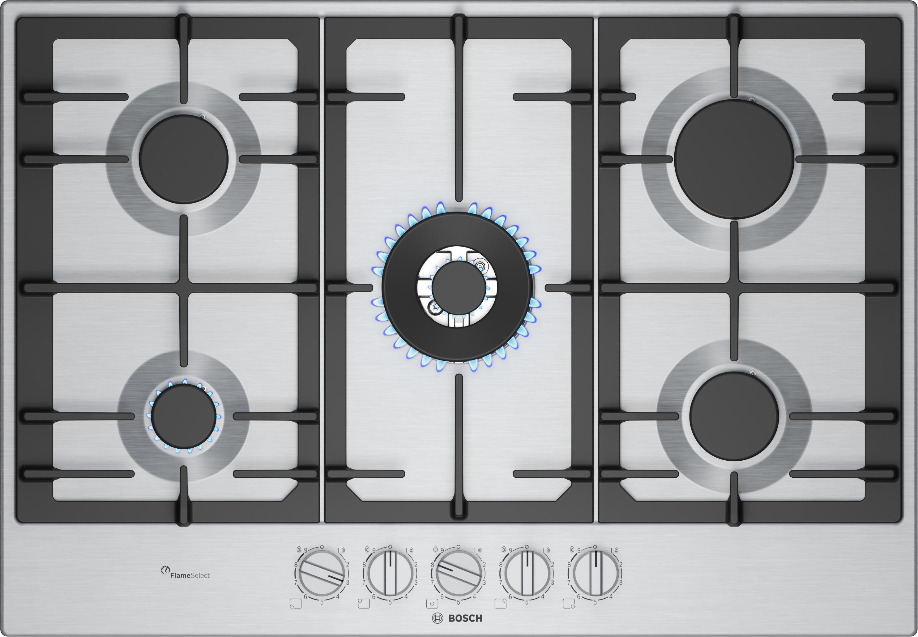 Design materiál desky: nerez litinové podložky pod hrnce s gumovými nožičkami kovové otočné voliče Komfort FlameSelect: přesné nastavení úrovně plamene v devíti definovaných a opakovatelných úrovních. ovládací volič ve tvaru meče, odnímatelné ovládací voliče: snadno přístupné ovládací voliče vpředu se silným úchopem pro snadné otáčení. integrované zapalování v ovládacím voliči: stačí jen zatlačit a otočit, abyste zapálili plamen. Výkon hořáků 5 plynových hořáků vlevo vpředu: úsporný hořák až 1 kW (záleží na typu plynu) vlevo vzadu: normální hořák až 1.75 kW (záleží na typu plynu) střed vpravo: hořák Wok až 4 kW (záleží na typu plynu) vpravo vzadu: silný hořák až 3 kW (záleží na typu plynu) vpravo vpředu: normální hořák až 1.75 kW (záleží na typu plynu) Čištění odnímatelné ovládací voliče pro snadné čištění a údržbu varné desky. rošty vhodné do myčky nádobí značně usnadňují jejich údržbu. Bezpečnost termoelektrická pojistka zhasnutí plamene: zabraní nežádoucímu proudění plynu při zhasnutí plamene. Instalace (dle typu plynu) použitelné pro: zemní plyn L/LL G25/20mbar(DE) NG H/E 20mbar, E+ 20/25mbar zemní plyn H 25 mbar (HU) zemní plyn L 25 mbar (NL) propan-butan G30,31 28-30/37mb propan-butan G30 37 mbar (PL) propan-butan 50 mbar přednastaveno na zemní plyn (20 mbar) sada trysek pro trysky na propan-butan (28-30/37mbar) součástí dodávky. Trysky pro všechny ostatní druhy plynů lze objednat prostřednictvím zákaznického servisu. Pro výměnu trysek kontaktujte zákaznický servis rozměry spotřebiče (V x Š x H): 51.5 x 750 x 520 mm rozměry pro vestavbu (V x Š x H) : 45 x 560 x 480 - 490 mm min. tloušťka pracovní desky: 20 mm délka připojovacího kabelu: 1 m celkový objem připojeného plynu: 11.5 kW Příslušenství podložka pod malé hrnce je součástí spotřebiče