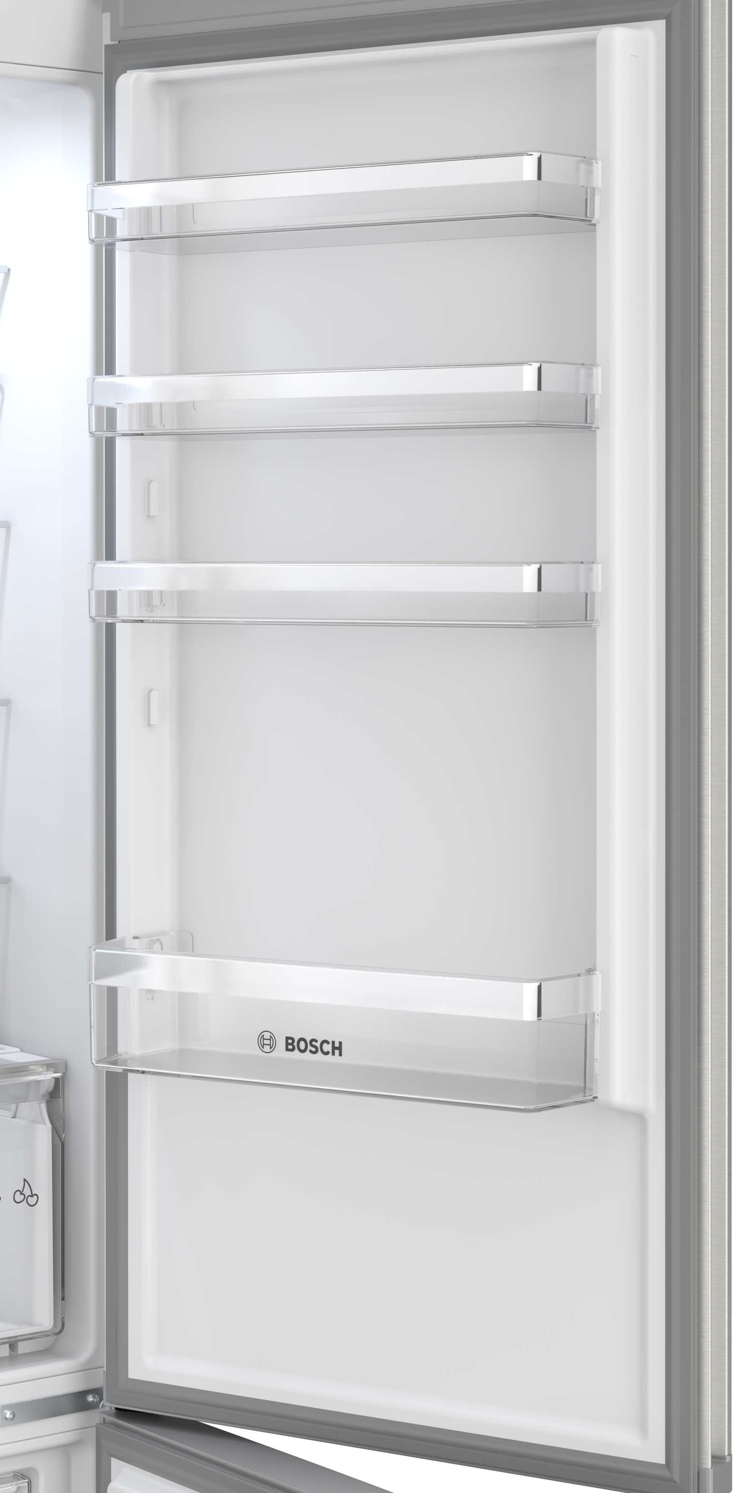 Total No Frost: už žádné odmrazování ani kapky vody na zadní stěně chladničky dveře: matná ocel s úpravou proti otiskům prstů Výkon a spotřeba třída spotřeby energie: A spotřeba energie: 100 kwh/rok užitný objem celkem: 363 l hlučnost: 29 dB; třída hlučnosti: A Design barva dveří: matná ocel s úpravou proti otiskům prstů, barva bočních stran: perleťově šedá vysoce lesklá zadní stěna se systémem multiAirflow integrované, vertikální madlo LED se SoftStart v chladící částí Komfort a bezpečnost Total No Frost: už žádné odmrazování ani kapky vody na zadní stěně chladničky Home Connect: ne LED elektronická regulace teploty - oddělená pro chlazení i mrazení 2 chladicí okruhy funkce super chlazení: automatická deaktivace optický a akustický varovný signál při ponechání otevřených dveří optický a akustický varovný signál při zvýšené teplotě ve vnitřním prostoru mrazničky Chladicí prostor čistý objem chladící části : 260 l Multi Airflow systém 5 x odkládací plocha z bezpečnostního skla, z toho 3 x výškově nastavitelná držák na lahve 1 x velká přihrádka a 3 x malá odkládací přihrádka ve dveřích Freshness System 1 zásuvka VitaFresh ◄0°C► - ryby a maso zůstanou déle čerstvé 1 x zásuvka VitaFresh s regulací vlhkosti - udrží ovoce a zeleninu déle čerstvé a plné vitamínů Mrazicí prostor čistý objem mrazicí části : 103 l mrazicí kapacita 24h : 11 kg doba skladování při poruše: 22 h hod. funkce super mrazení 3 x transparentní mrazicí zásuvka Rozměry rozměry spotřebiče (V x Š x H) : 203.0 cm x 60.0 cm x 66.5 cm Technické informace závěs dveří vpravo, volitelný výškově nastavitelné nožičky vpředu délka přívodního kabelu: 226 cm klimatická třída: SN-T napětí: 220 - 240 V Příslušenství 1 x miska na led Specifika Na základě výsledků normalizované zkoušky trvající 24 hodin. Skutečná spotřeba energie závisí na způsobu použití a umístění spotřebiče. Prostředí a bezpečnost Instalace Všeobecné informace