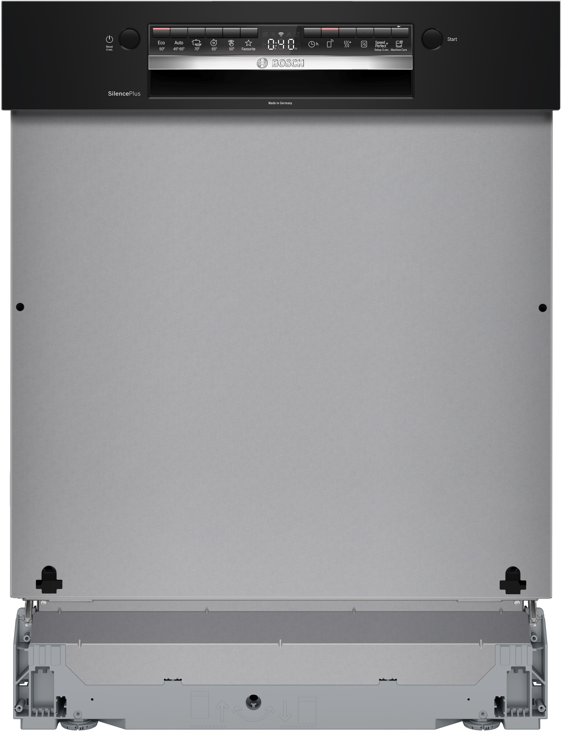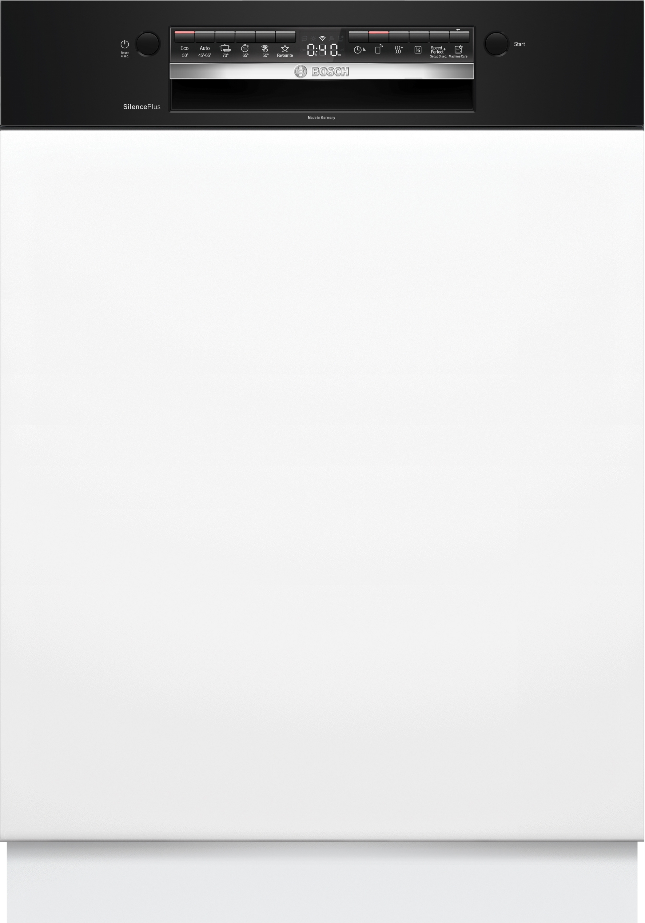 Výkon a spotřeba třída energetické účinnosti:¹ C energie² / voda³: 75 kWh / 9 l kapacita: 14 sad nádobí doba trvání programu:⁴ 4:55 h:min hladina hluku: 42 dB(A) re 1 pW třída hlučnosti: B hlučnost (Tichý program): 41 dB (A) re 1 pW Programy a speciální funkce 6 programů: Eco 50 °C, Auto 45-65 °C, intenzivní 70 °C, Hodinový 65 °C, Tichý 50 °C, Oblíbený výchozí Oblíbený program: Předmytí 4 speciální funkce: Vzdálené zapnutí, Extra sušení, Poloviční náplň, SpeedPerfect+ program péče o myčku nádobí: Machine Care doplňkové funkce dostupné v aplikaci Home Connect: Hygiena Plus, Silence on demand Technologie mytí a senzory výměník tepla AquaSenzor dávkovací asistent EcoSilence Drive samočisticí filtrační systém s třívrstvým zvlněným filtrem materiál vnitřní vany: nerezová ocel Systém košů koše Flex příborová zásuvka VarioDrawer 3 výškově nastavitelné polohy horního koše pomocí systému Rackmatic kolečka s nízkým třením ve spodním koši zarážka proti vykolejení spodního koše 2 řady sklopných trnů na talíře v horním koši 2 řady sklopných trnů na talíře ve spodním koši 2 výklopné etažéry na šálky v horním koši 2 výklopné etažéry na šálky ve spodním koši Ukazatele stavu a obsluhy připojení Home Connect pomocí Wi-Fi popisky na panelu: anglický text ukazatel zbývajícího času programu v minutách časová předvolba 1-24 hod Bezpečnost AquaStop: záruka značky Bosch v případě poškození vodou - po celou dobu životnosti spotřebiče* elektronická blokace tlačítek systém šetrného mytí skla Příslušenství vč. násypky na sůl vč. ochrany pracovní desky před párou Rozměry rozměry spotřebiče (V x Š x H): 81.5 x 59.8 x 57.3 cm