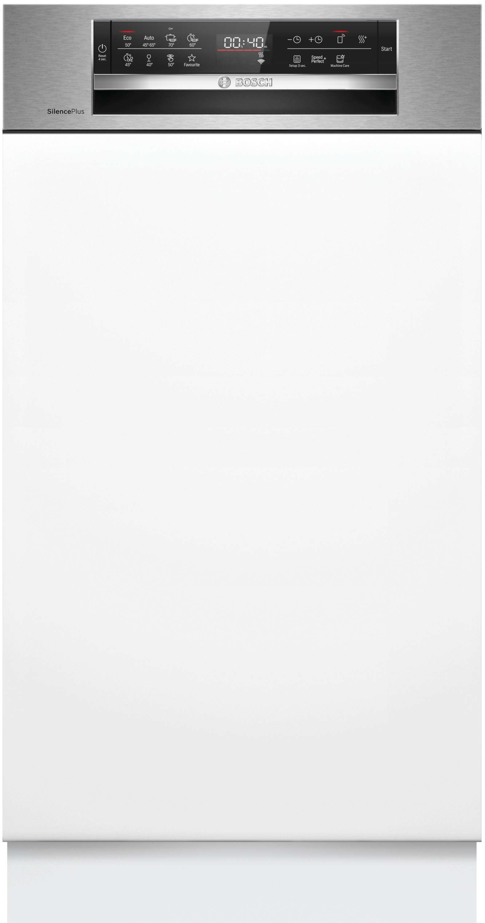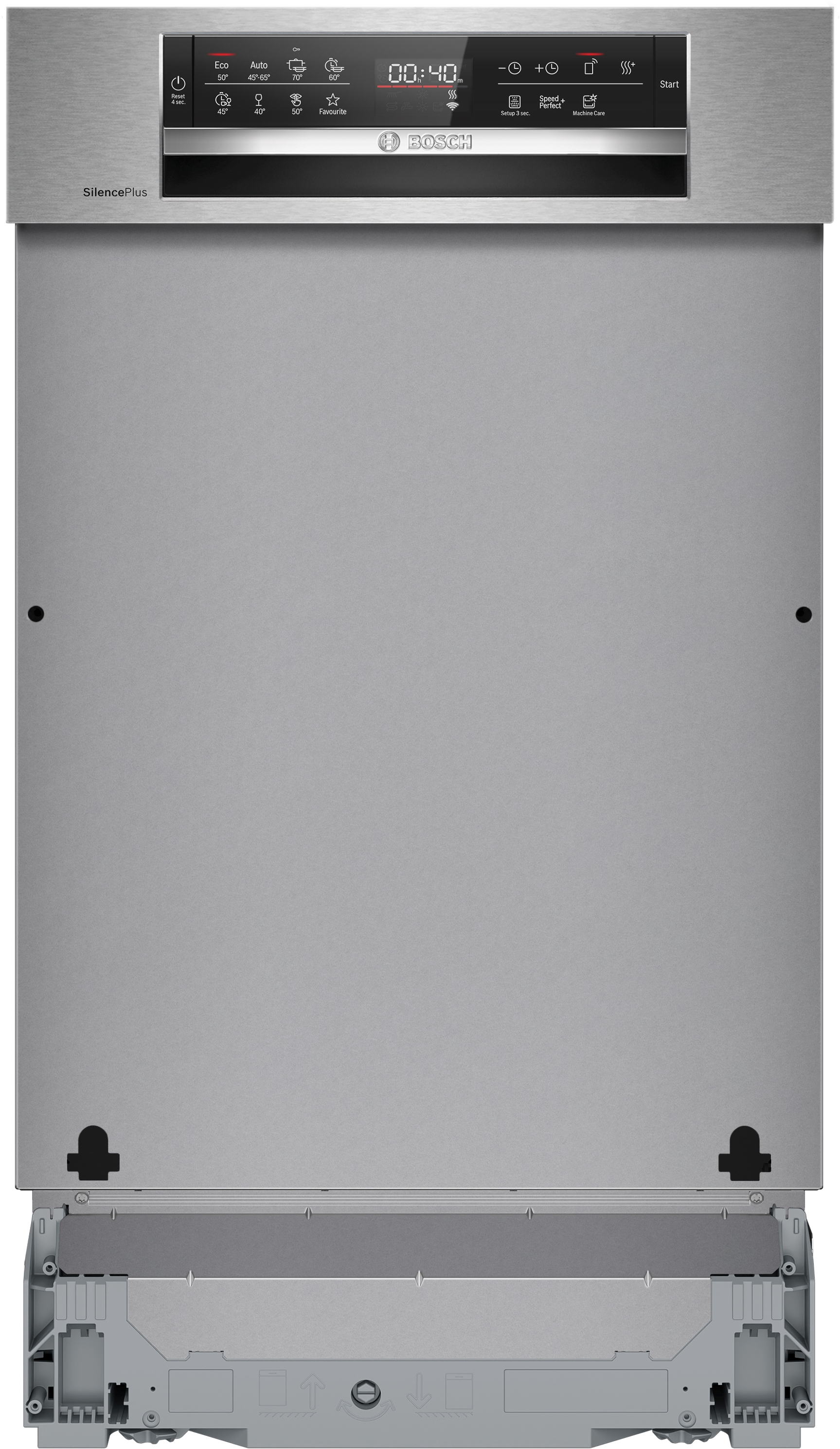 Výkon a spotřeba třída energetické účinnosti:¹ B energie² / voda³: 51 kWh / 8.7 l kapacita: 10 sad nádobí doba trvání programu:⁴ 3:55 h:min hladina hluku: 44 dB(A) re 1 pW třída hlučnosti: B hlučnost (Tichý program): 43 dB (A) re 1 pW Programy a speciální funkce 8 programů: Eco 50 °C, Auto 45-65 °C, intenzivní 70 °C, Krátký 60 °C, Rychlý 45 °C, Sklo 40 °C, Tichý 50 °C, Oblíbený výchozí Oblíbený program: Předmytí 4 speciální funkce: Vzdálené zapnutí, Extra sušení, Intensive Zone, SpeedPerfect+ program péče o myčku nádobí: Machine Care doplňkové funkce dostupné v aplikaci Home Connect: Hygiena Plus, Silence on demand Technologie mytí a senzory EfficientDry a výměník tepla AquaSenzor dávkovací asistent EcoSilence Drive ostřikovací rameno DuoPower v horním koši samočisticí filtrační systém s třívrstvým zvlněným filtrem materiál vnitřní vany: nerezová ocel Systém košů systém košů VarioFlex Pro s červeně označenými uchopovacími částmi příborová zásuvka VarioDrawer Pro 3 výškově nastavitelné polohy horního koše pomocí systému Rackmatic kolečka s nízkým třením ve spodním koši barevné protiskluzové ochranné pásky v horním koši zarážka proti vykolejení spodního koše 3 řady sklopných trnů na talíře v horním koši 4 řady sklopných trnů na talíře ve spodním koši výklopný etažér na šálky v horním koši výklopný etažér na šálky ve spodním koši speciální držák na skleničky ve spodním koši Ukazatele stavu a obsluhy připojení Home Connect pomocí Wi-Fi dotykové ovládání (černé) popisky na panelu: anglický text Emotion Light ukazatel zbývajícího času programu v minutách ukazatel průběhu programu časová předvolba 1-24 hod Bezpečnost AquaStop: záruka značky Bosch v případě poškození vodou - po celou dobu životnosti spotřebiče* elektronická blokace tlačítek systém šetrného mytí skla Příslušenství vč. držáku láhve vč. násypky na sůl vč. ochrany pracovní desky před párou Rozměry rozměry spotřebiče (V x Š x H): 81.5 x 44.8 x 57.3 cm