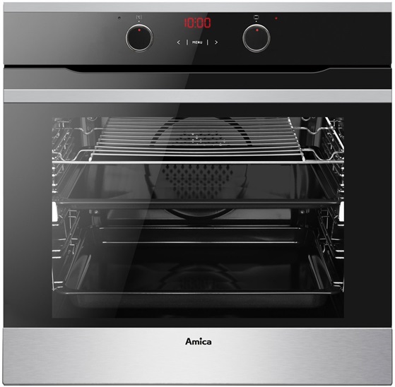 Vestavná trouba, Fusion, A, 77l, 11 programů vč. grilu a horkovzduchu, Ts dotykový displej, 1x teleskopický výsuv, super rychlý ohřev, trojité sklo, zamačkávací knoflíky, 2x plech, nerez