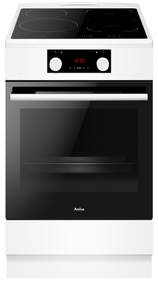 Indukční sporák, 50 cm, A, 65 l, 12 programů vč. grilu a horkovzduchu, Soft Steam - parní pečení, dotykový displej, super rychlý ohřev, Bridge zóna, trojité sklo, Soft close, 1x teleskopický výsuv, 1x plech, bílý