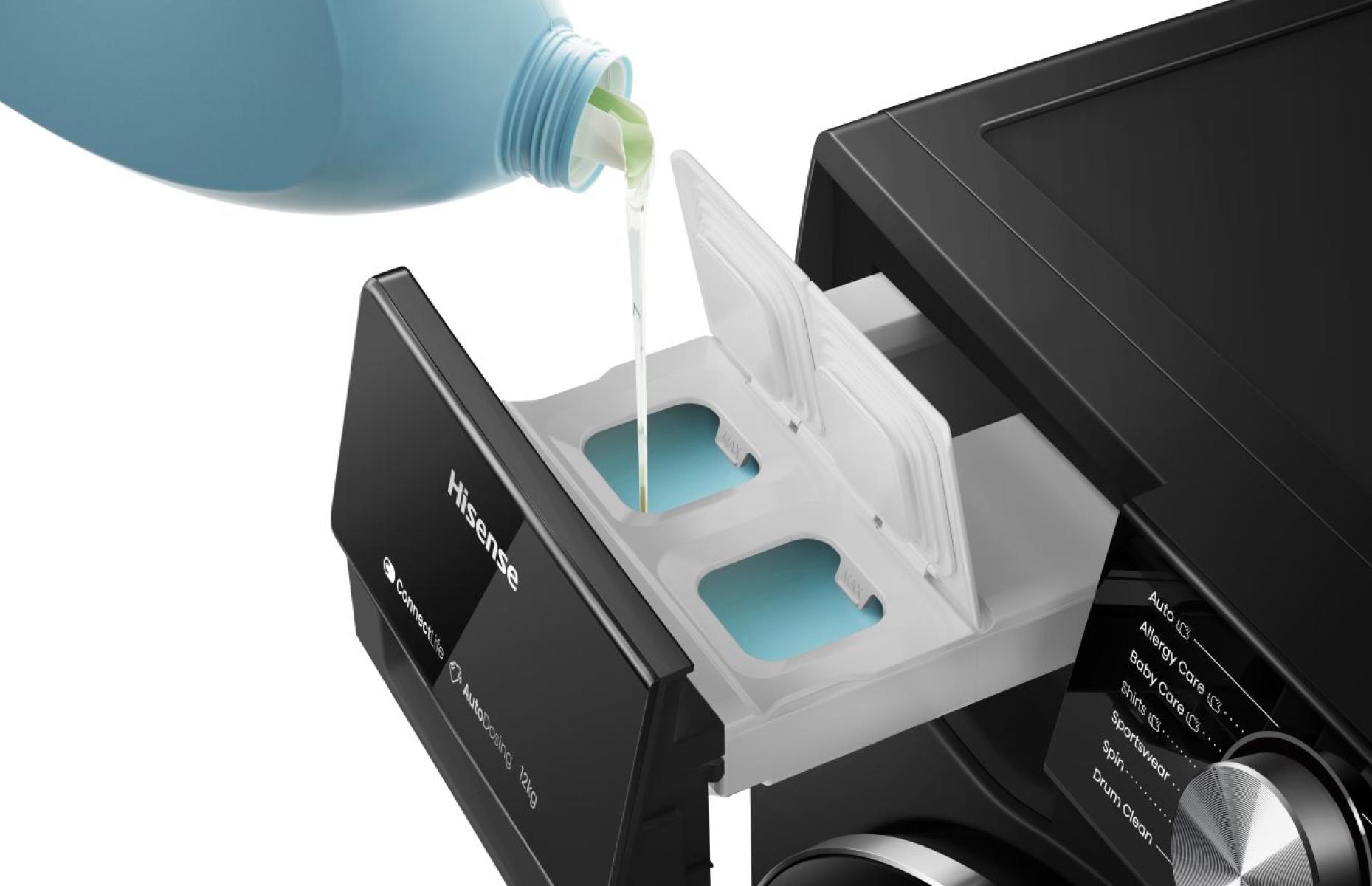 Vaše pračka automaticky zvolí přesné množství pracího prostředku nebo aviváže podle hmotnosti prádla. Zásobník vystačí až na 24 cyklů*, takže přibližně měsíc nemusíte prostředek doplňovat.*Výpočet vychází z průměru 6 cyklů týdně, 5 kg prádla a střední míry zašpinění. Skutečné výsledky se mohou lišit podle způsobu používání, množství prádla a zvoleného programu.