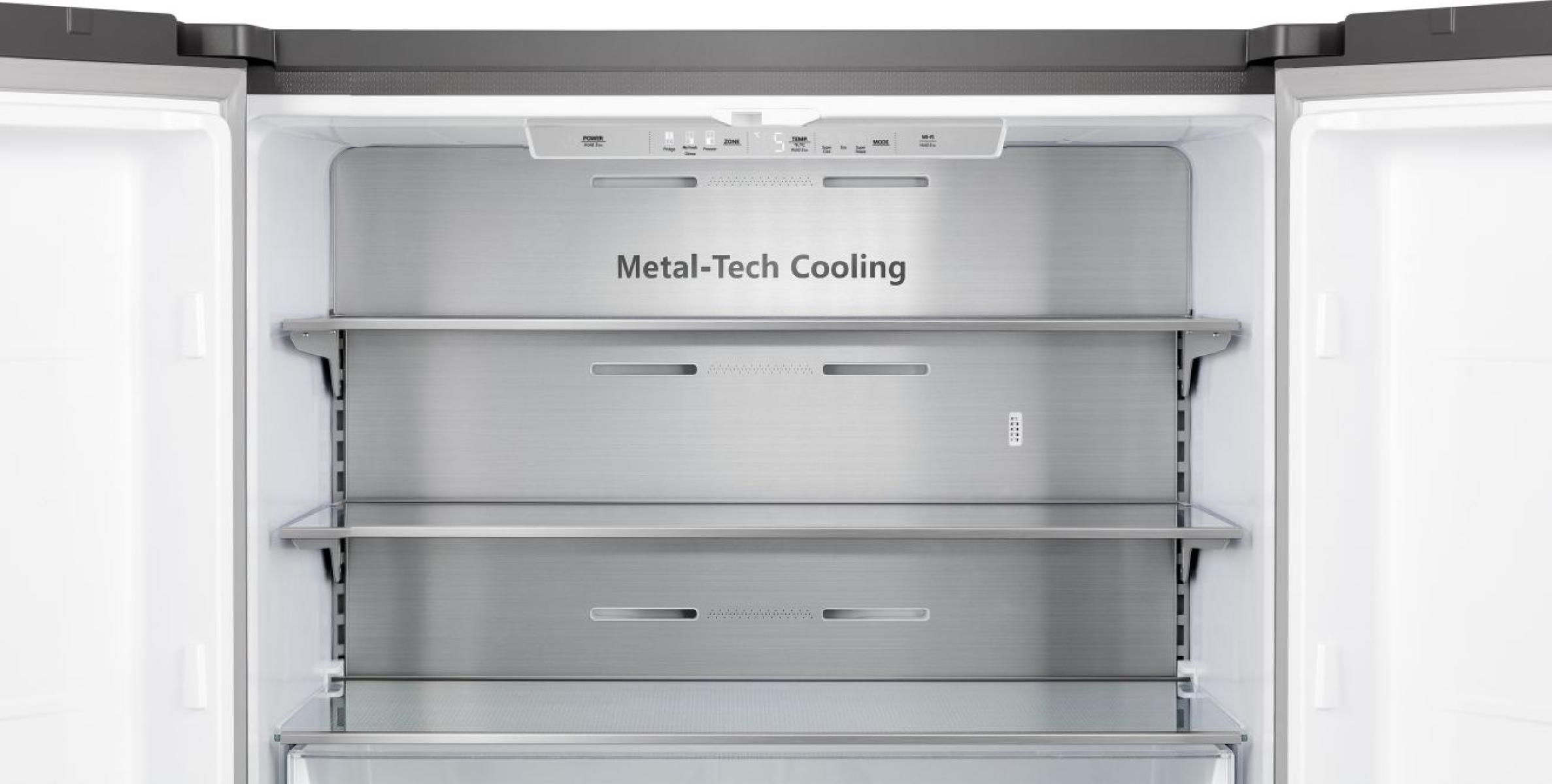 The rear wall of the fridge is overlaid with stainless steel, which ensures the cool air is distributed evenly from the inside out. This combination of advanced technologies ensures ideal temperature and humidity levels at all times.
