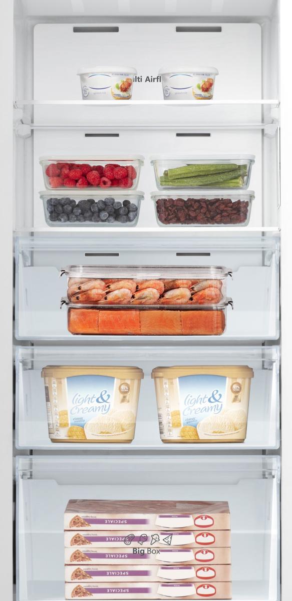 Zajišťuje ideální podmínky pro uchování potravin dlouhodobě čerstvých a plných živin tím, že v chladničce nevzniká námraza. To vám ušetří cenný čas, který byste jinak museli věnovat rozmrazování.
