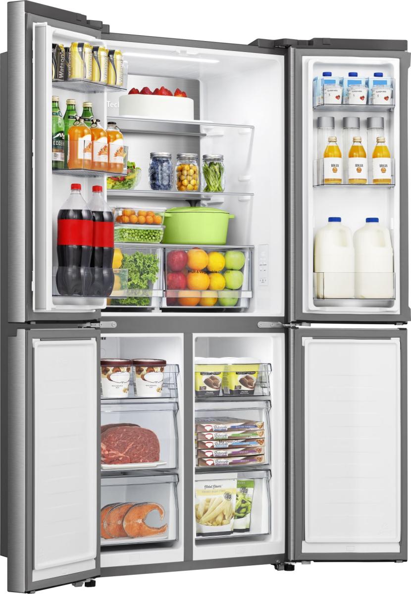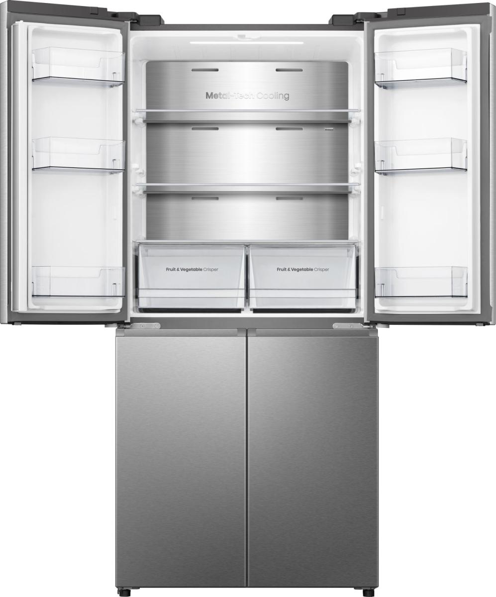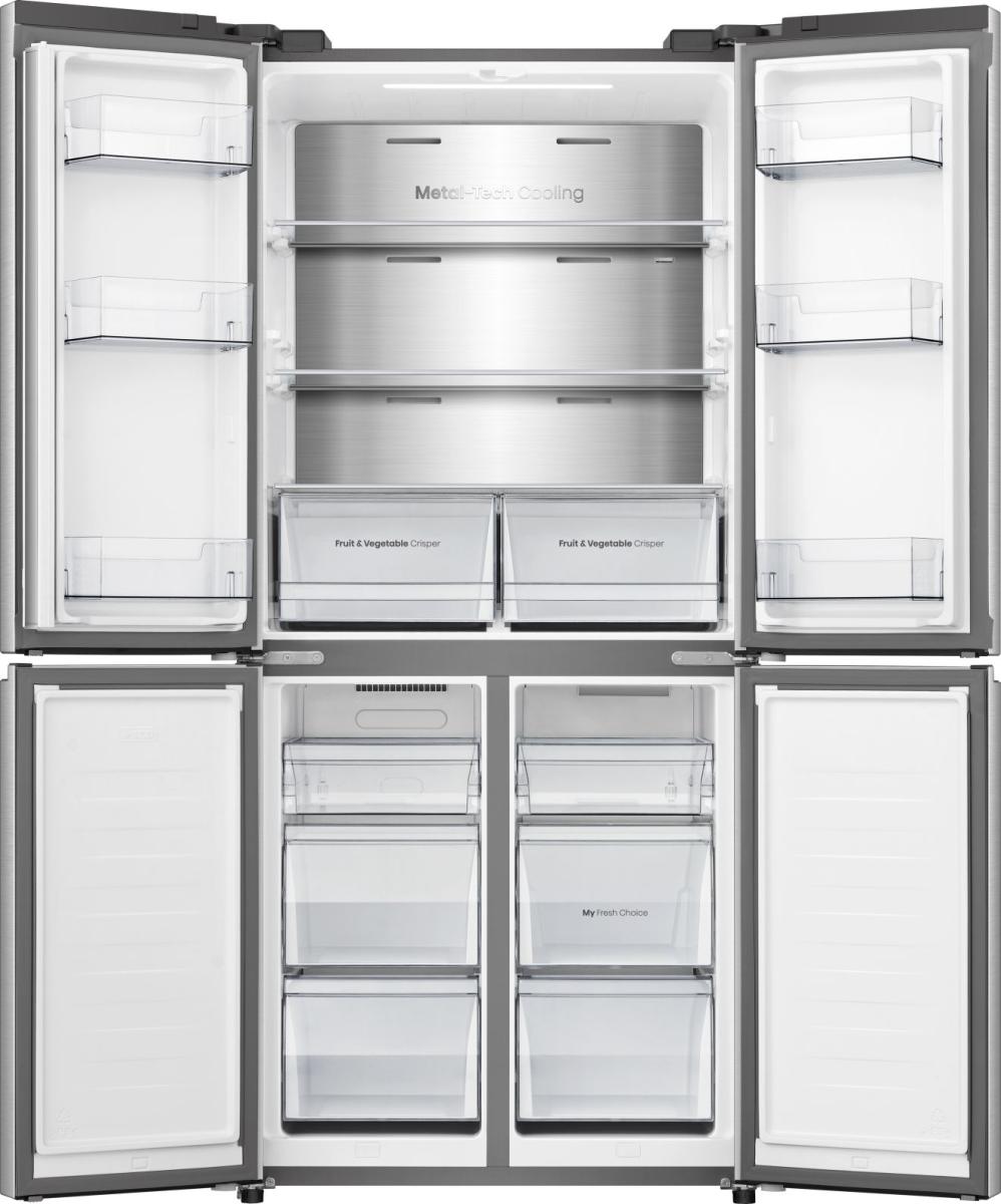 Čtyřdveřová chladnička s mrazákem vám poskytne dostatek prostoru pro potraviny pro celou rodinu. Díky širokému otevírání dveří máte vždy dokonalý přehled o všem, co je uvnitř.