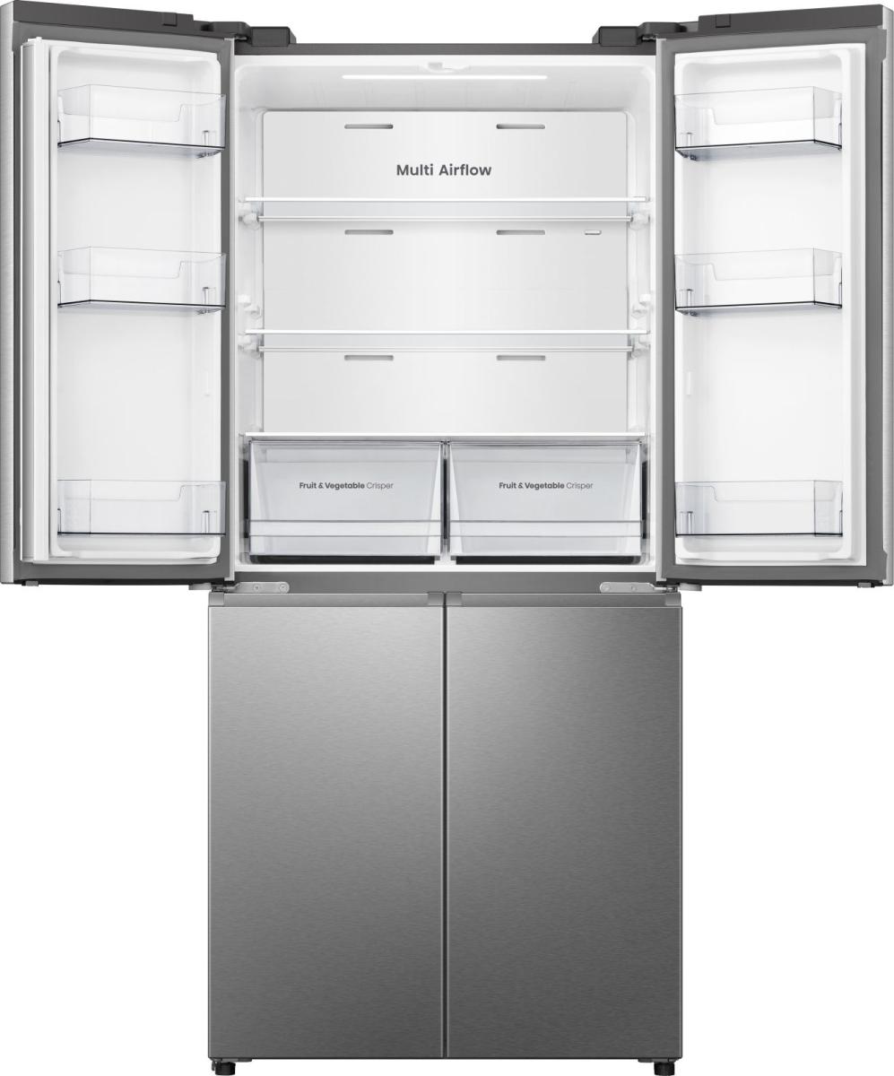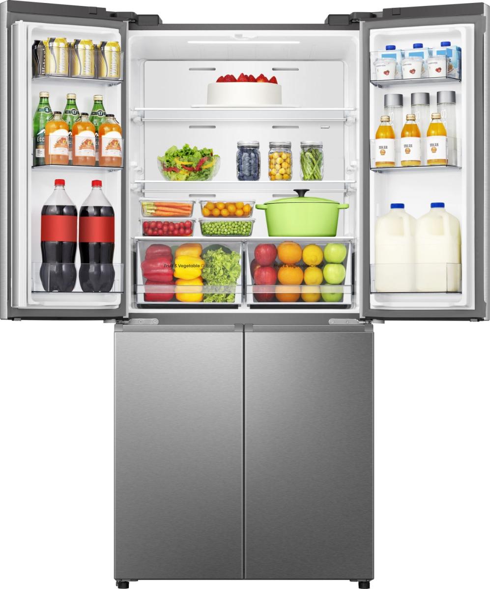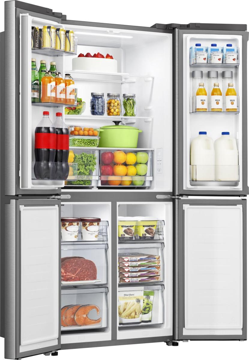 Čtyřdveřová chladnička s mrazákem vám poskytne dostatek prostoru pro potraviny pro celou rodinu. Díky širokému otevírání dveří máte vždy dokonalý přehled o všem, co je uvnitř.