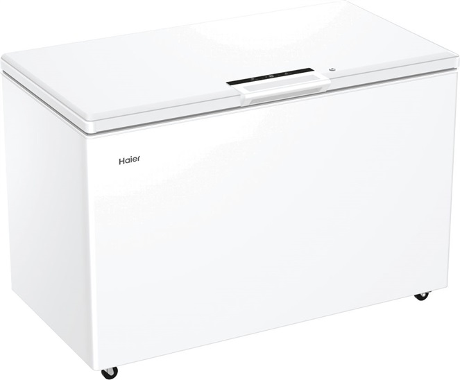truhlicový mrazák; en. třída E; objem 418 l; tichý chod 39 dB(A); klimatická třída SN - T; mrazicí výkon 15 kg/24 hod; akumulační doba 43 hodin; invertorový kompresor; 3 závěsné koše; funkce Rychlé mrazení; externí dotykový displej; úsporné LED osvětlení; 4 kolečka; zámek dveří; 89x132x75 cm