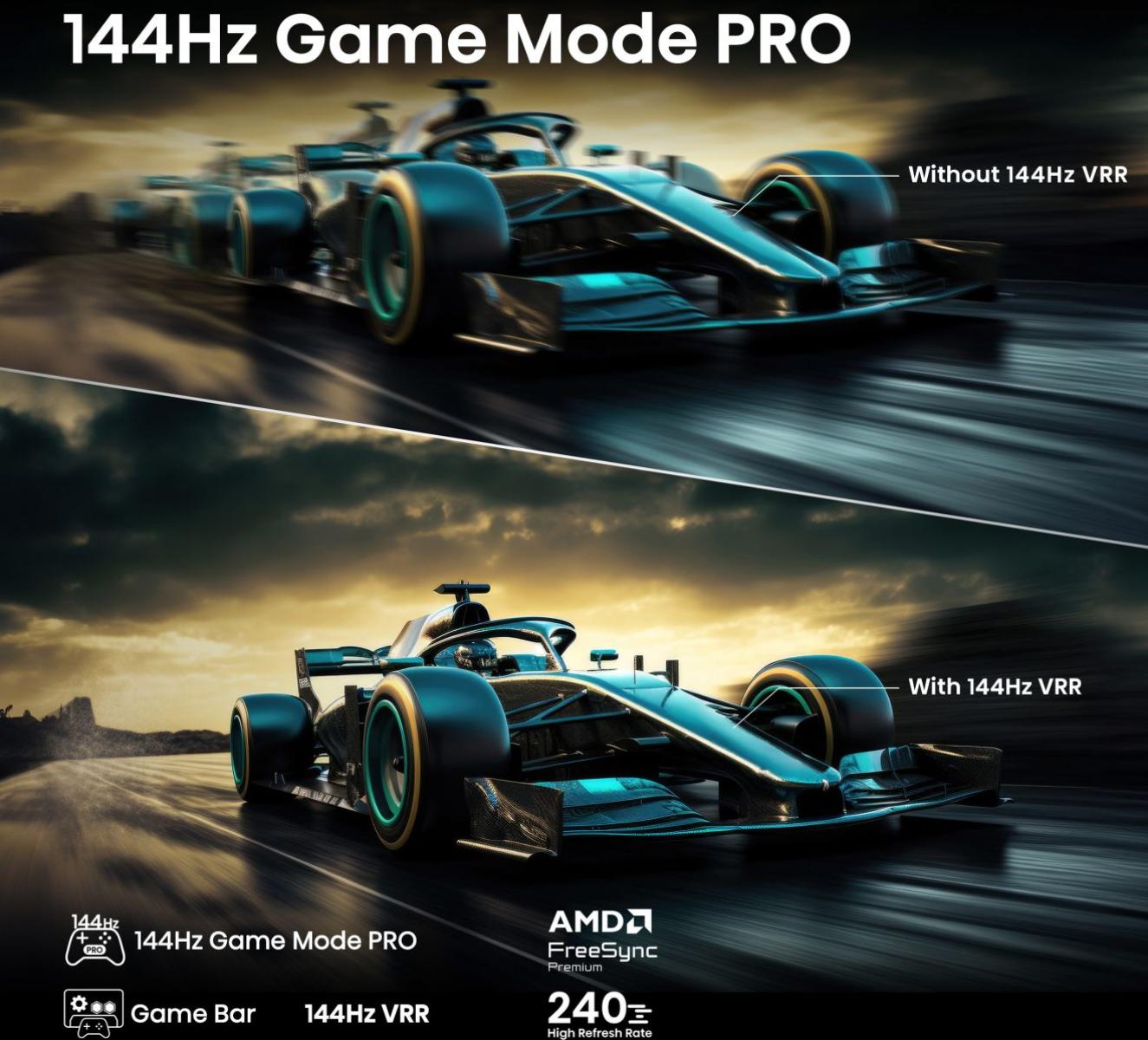 Odemkněte svůj herní potenciál s 144Hz Game Mode PRO. Díky rychlému a výkonnému 144 Hz panelu s VRR a AMD Free Sycnc Premium se rozlučte se zpožděním a užijte si hraní bez trhání obrazu.