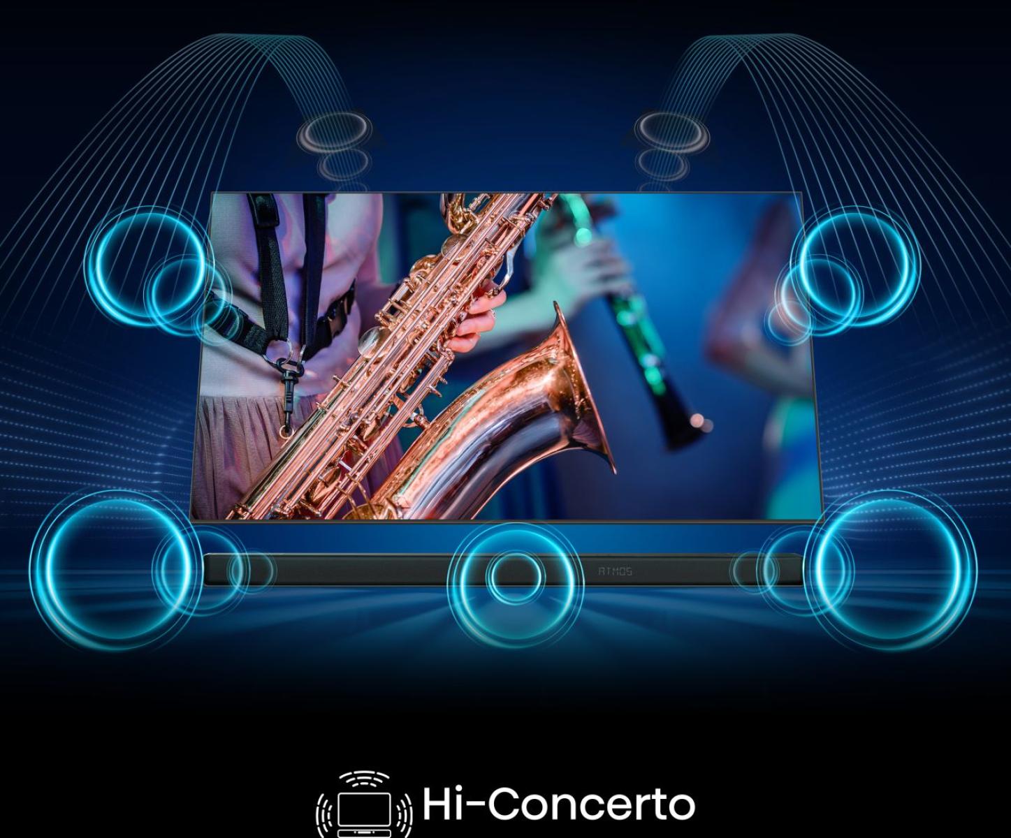 Díky technologii Hi-Concerto spolu obě zařízení dokonale spolupracují a vytvářejí jednoduché domácí kino – bez zbytečných kabelů nebo dalšího hardwaru.Hi-Concerto je kompatibilní pouze s vybranými modely televizorů Hisense.