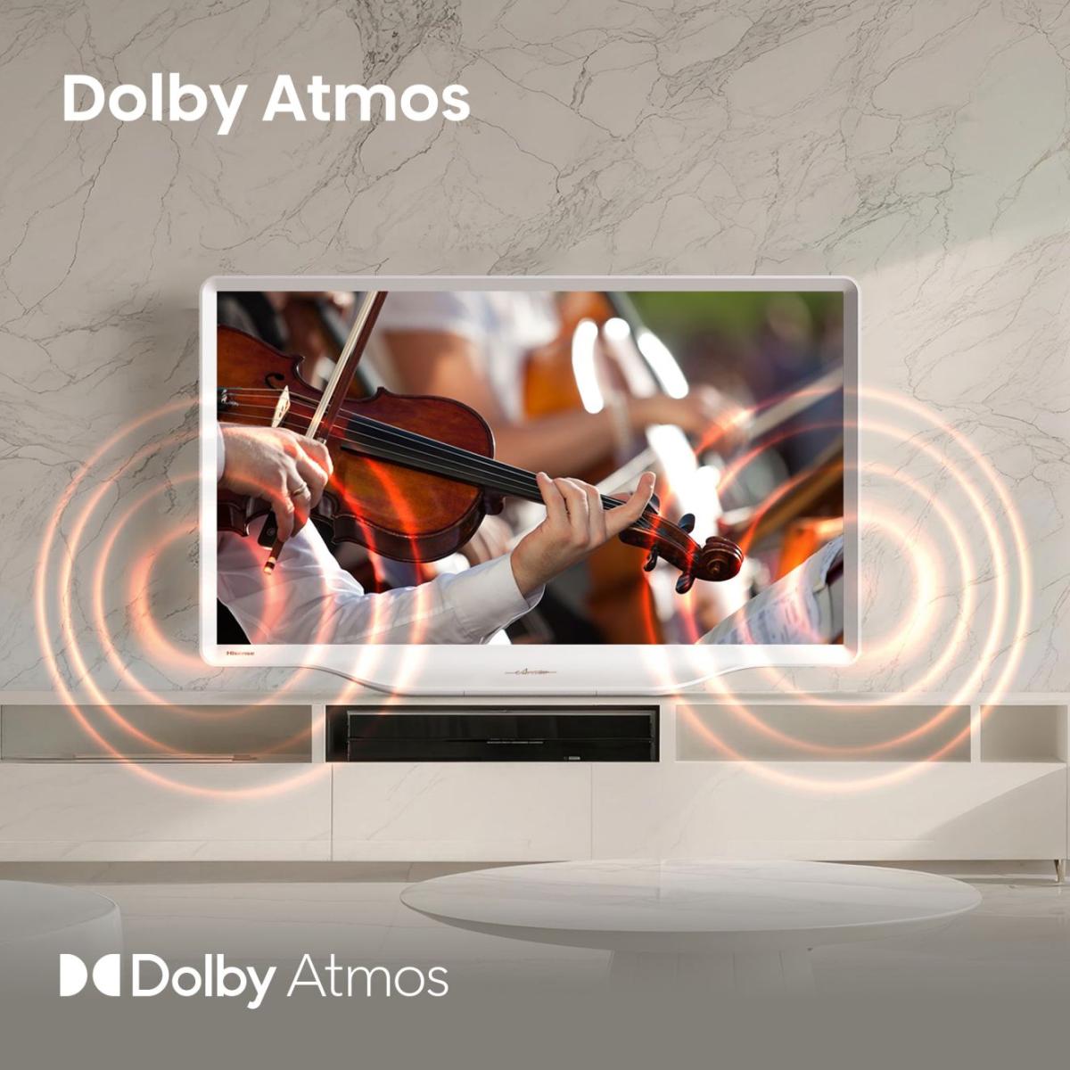 Objevte zcela nový svět zvuku s technologií Dolby Atmos®. Ta představuje výrazný posun oproti klasickému prostorovému zvuku – promění běžný okamžik v mimořádný zážitek. Zvuk vás obklopí ze všech stran, včetně prostoru nad vámi, a svou prostorovou hloubkou vytváří silně působivý audiovizuální zážitek.