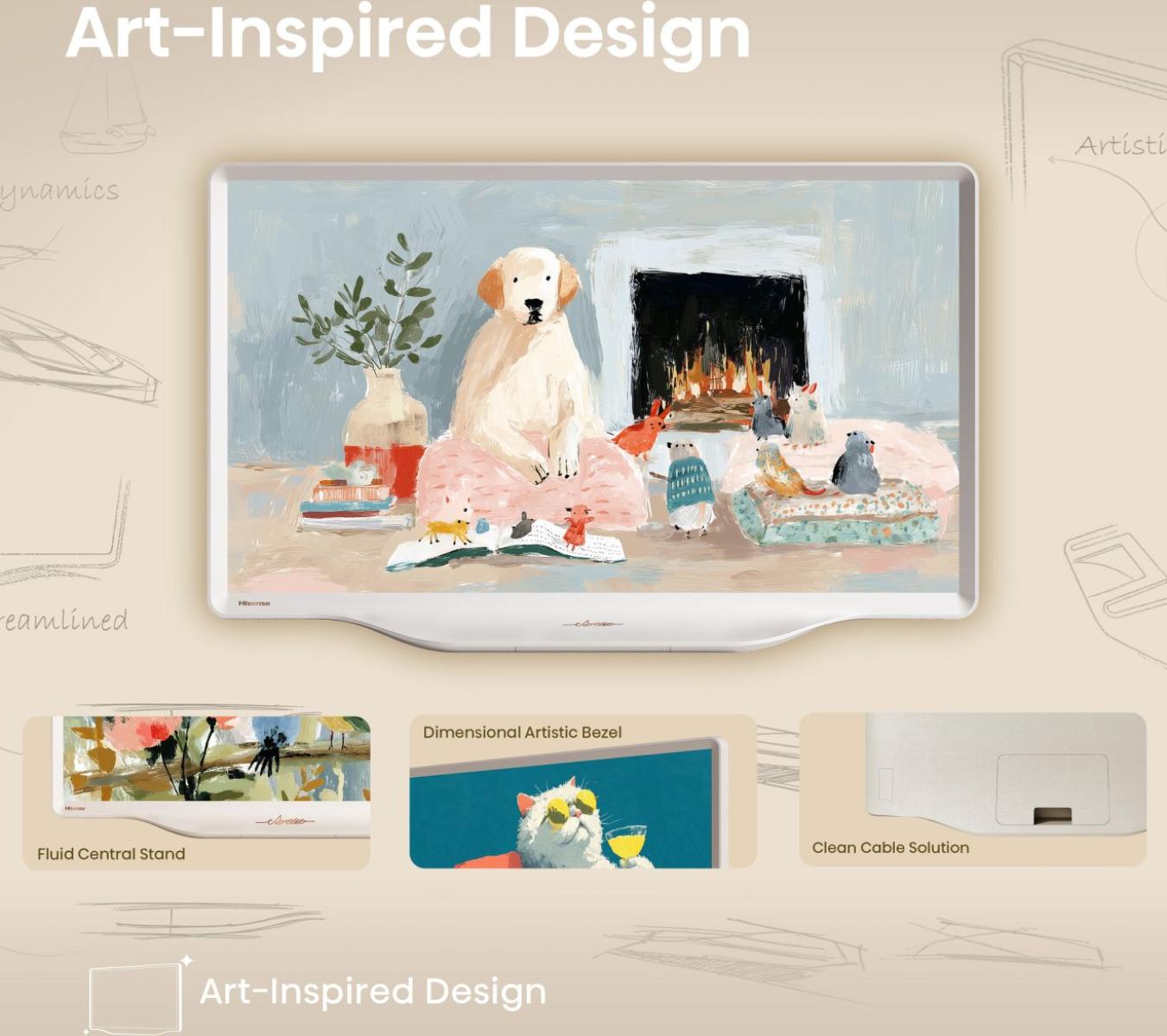 Hisense DécoTV spojuje naši neutuchající snahu o estetiku domova s hlubokými znalostmi televizní technologie a vytváří tak životní styl, v němž se snoubí kvalita a krása, která pohladí duši. Uprostřed každodenního shonu se na chvíli zastavte a nechte své dny naplnit krásou.