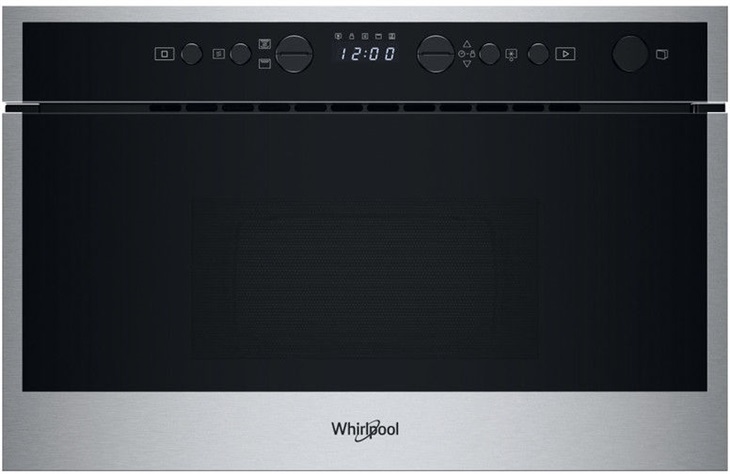 mikrovlnná trouba; objem 22 l; mikrovlnný výkon 750 W; výkon grilu 700 W; 4 úrovne ohřevu; otočný talíř o průměru 25 cm; 1. Crisp; 2. Gril; 3. JetDefrost; tlačítka; digitální displej; signál při ukončení procesu; 38,2x59,5x32 cm