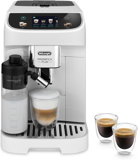 Plnoautomatický kávovar Magnifica Plus - Intuitivní dotykový barevný displej pro jednoduché ovládání kávovaru. Systém pěnění mléka LatteCrema Hot. Až 15 kávových a mléčných nápojů. 3 teplotní nastavení. 4 nastavení velikosti nápoje. 5 nastavení aroma kávy. Kávovar lze použít se zrnkovou i předemleto