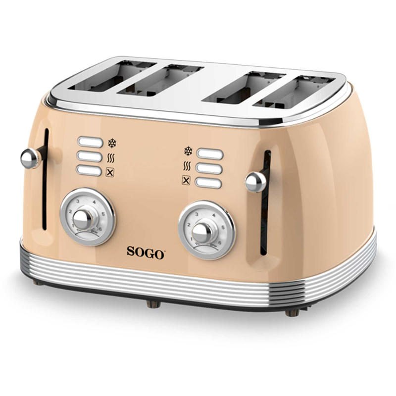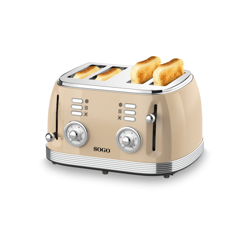 <p>RETRO elegantní topinkovač na 4 toasty. Béžové retro provedení a vysoký výkon. Tlačítko pro zrušení uprostřed cyklu. Funkce automatického vyskakování. Rozmrazování chleba a funkce ohřevu. 2 elektronické regulace teploty na toast podle chuti - 6 úrovní. Vyjímatelná miska na drobky pro snadné čištění. Příkon: 1500 W</p>