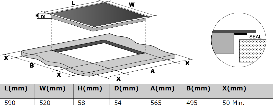 | Rozměry otvoru pro vestavbu (V x Š x H) | 56,5 x 49,5 |