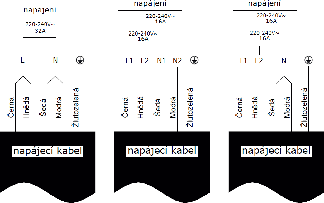 | Elektrické připojení | 400 V / 50 Hz / 2 x 16 A |