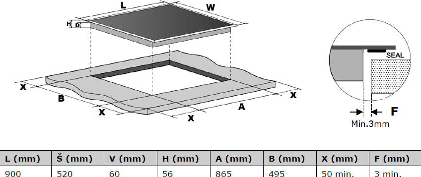 | Možnost zapuštění varné desky do pracovní desky | Ne |