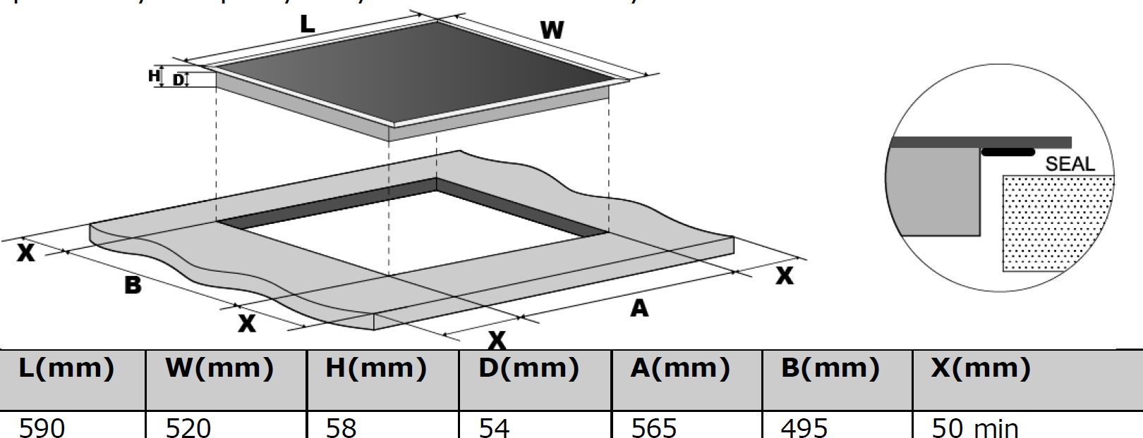 | Rozměry otvoru pro vestavbu (V x Š x H) | 56,5 x 49,5 |