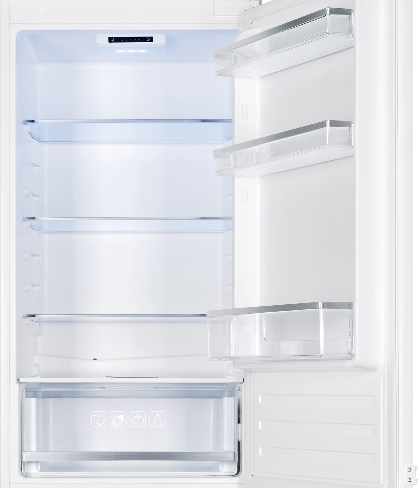Chladicí část: Objem 195 l; 1 pevná police a 3 nastavitelné police z tvrzeného skla; 1 zásuvka na ovoce a zeleninu; LED vnitřní osvětlení; Ve dveřích velká přihrádka na láhve a 2 standardní přihrádky pro přehledné uspořádání potravin; Zásobník na vajíčka