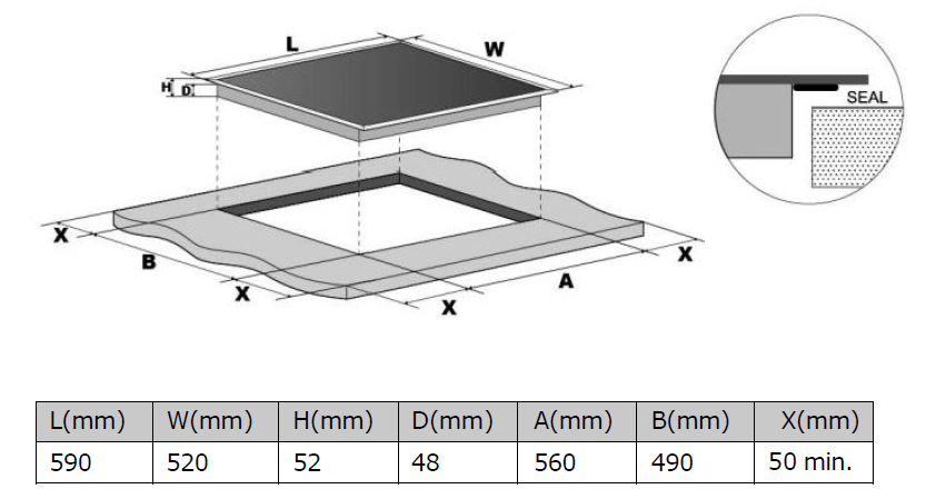 | Rozměry otvoru pro vestavbu (V x Š x H) | 56 x 49 |