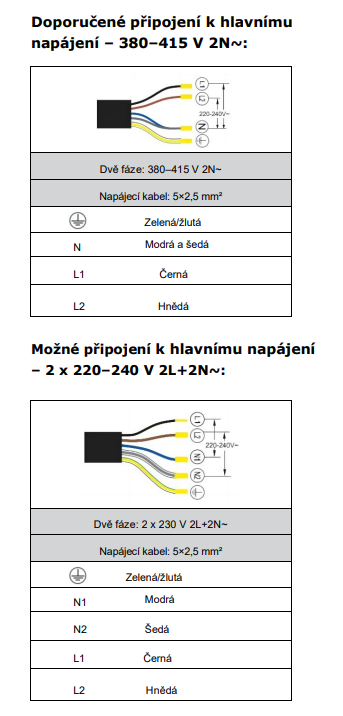 | Elektrické připojení | 400 V / 50 Hz / 2 x 16 A |