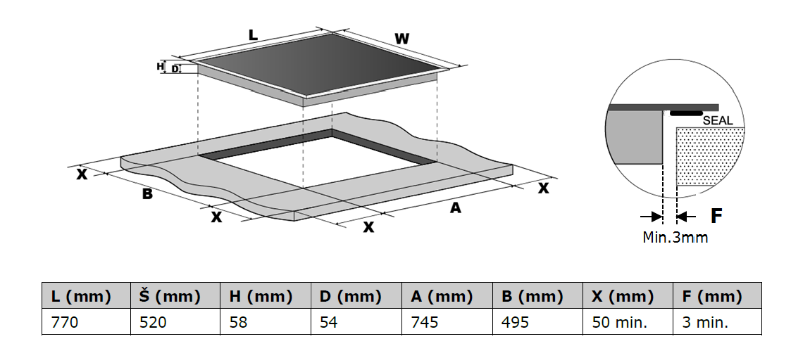 | Rozměry otvoru pro vestavbu (V x Š x H) | 74,5 x 49,5 |