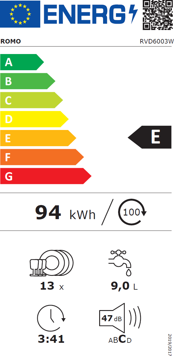 | Energetická třída myčky | E |