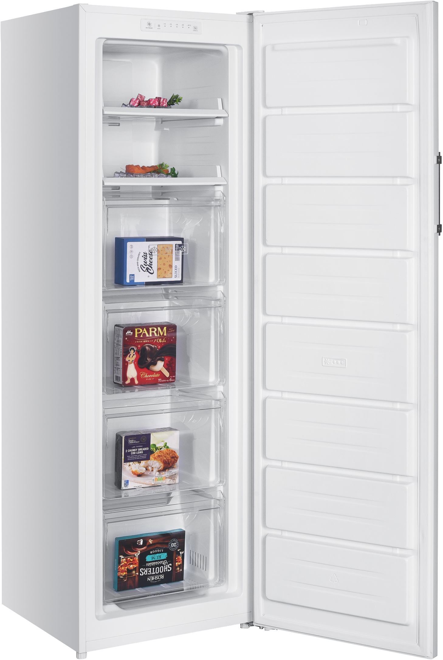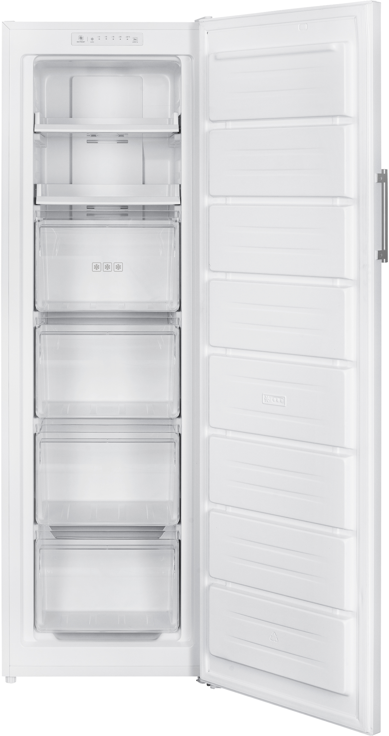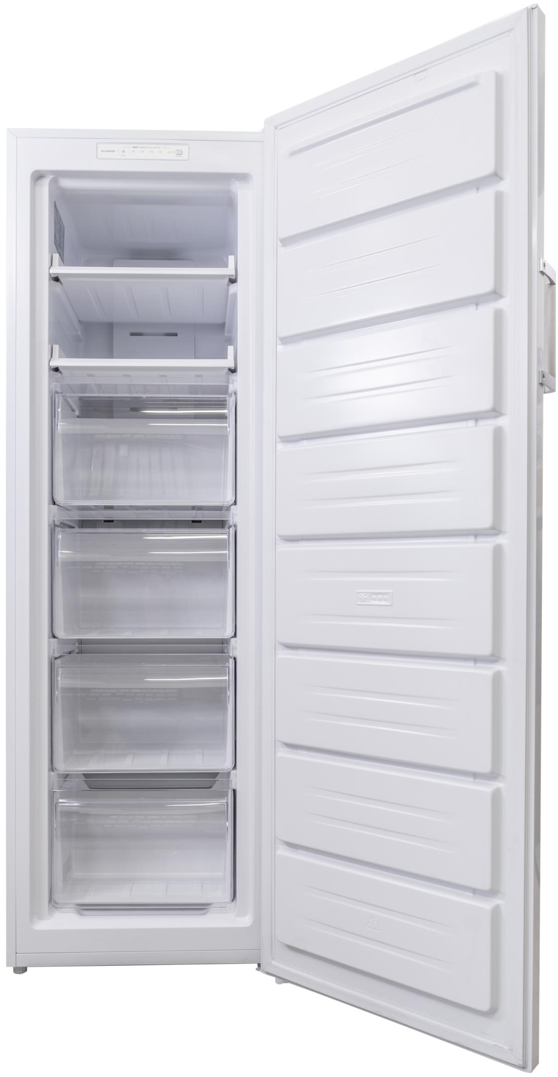 Volně stojící zásuvková mraznička Total No Frost v bílém barevném provedení; celkový užitný objem 204 l; elektronické ovládání s LED ukazateli; elektronický termostat; funkce super mrazení; možnost změny směru otevírání dveří; 4 objemné+ 2 posuvné zásuvky; Alarm otevřených dveří; mrazící výkon 13 kg/24 h; výdrž bez proudu až 10 h; klimatická třída: SN-T; energetická třída D; hlučnost 39 dB(A); Roční spotřeba el. energie: 177 kWh; Rozměry (VxŠxH): 171 x 54,5 x 60 cm, hmotnost 49 kg
