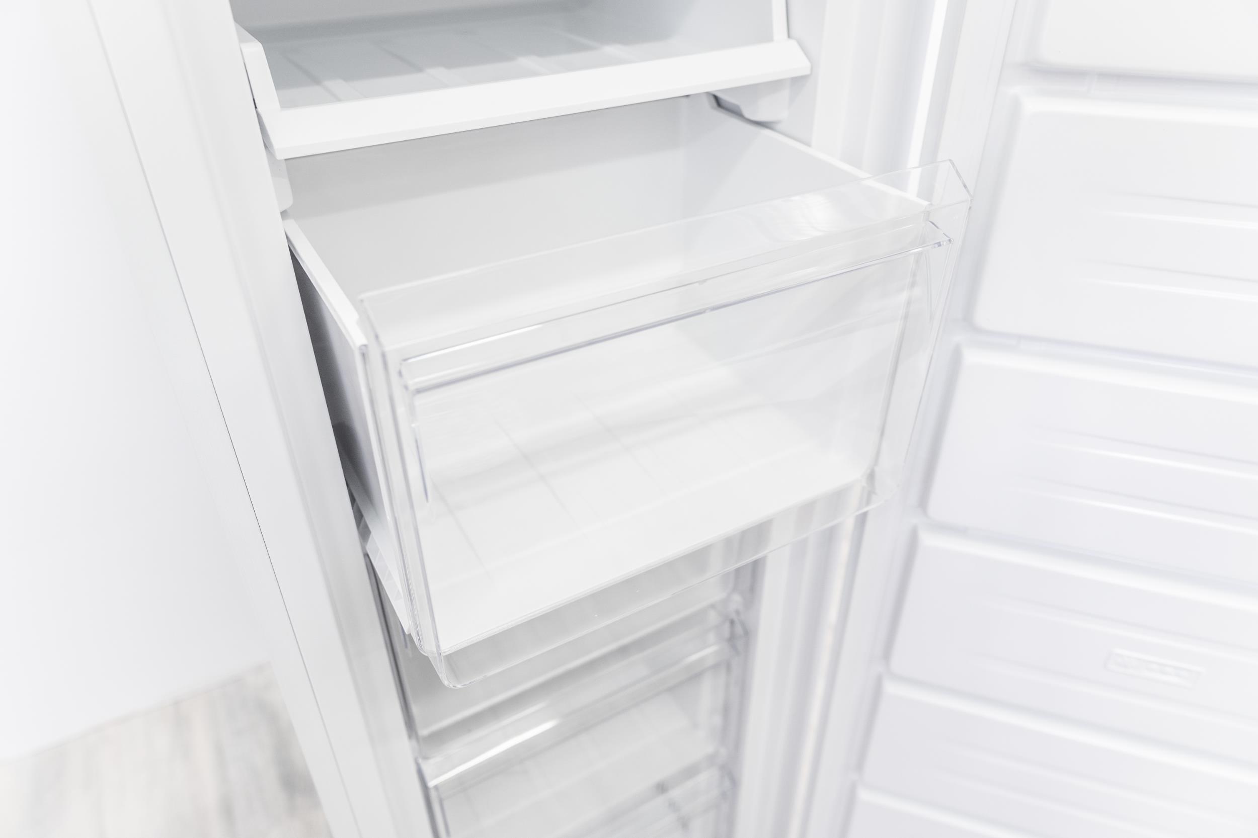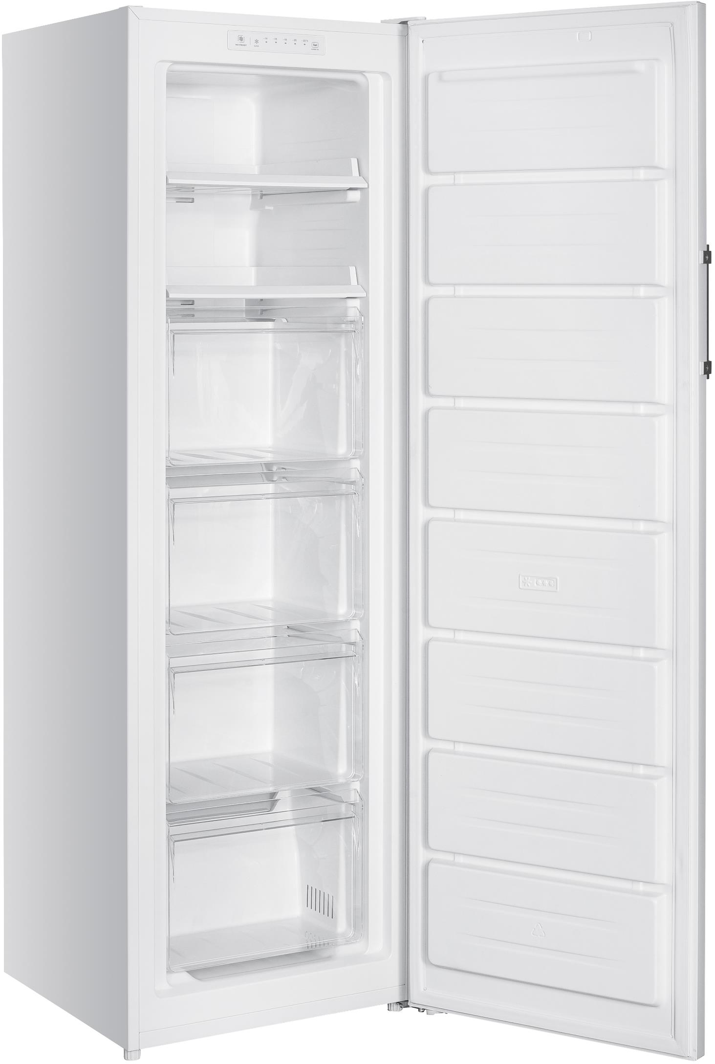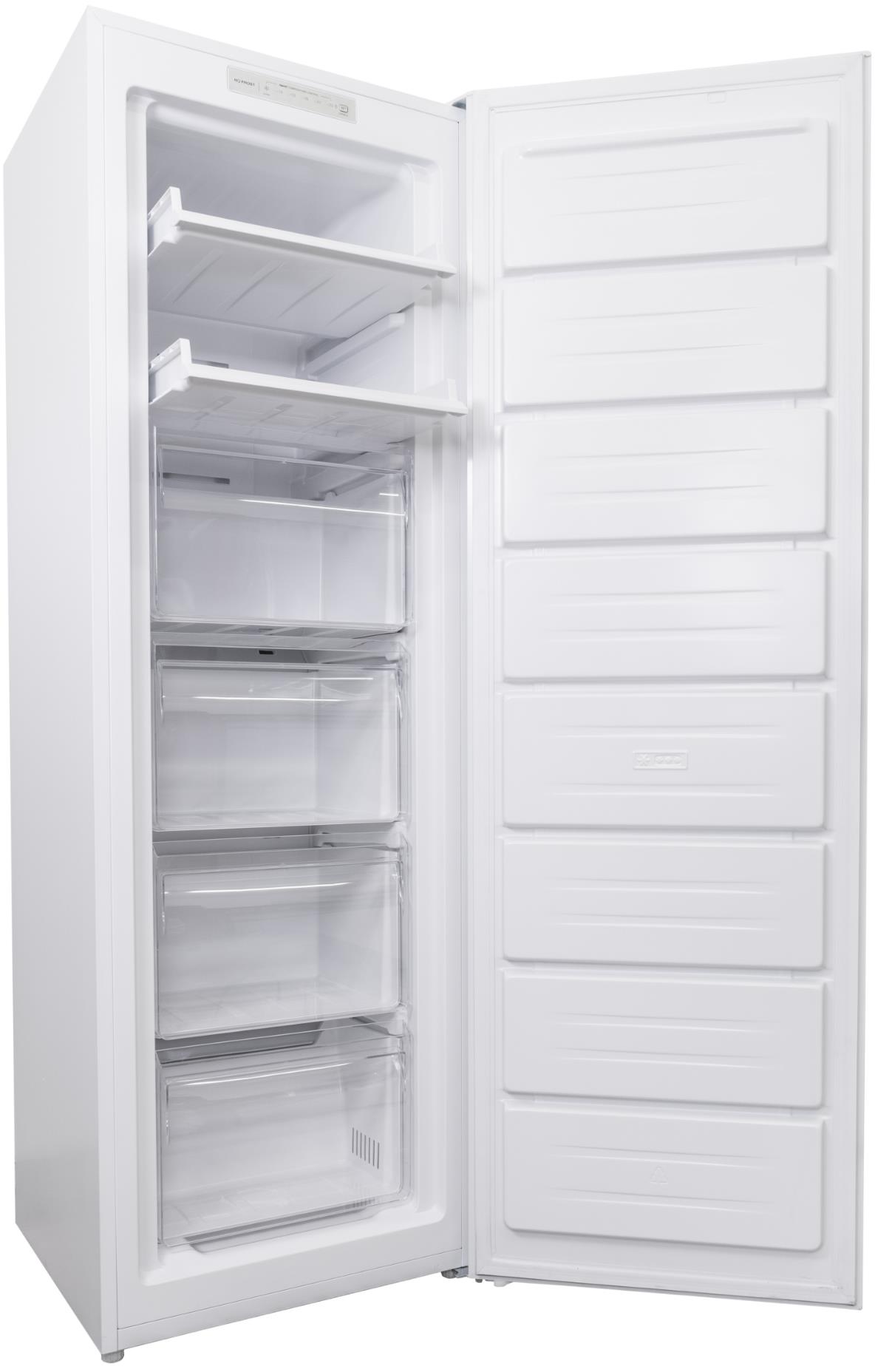 Volně stojící zásuvková mraznička Total No Frost v bílém barevném provedení; celkový užitný objem 204 l; elektronické ovládání s LED ukazateli; elektronický termostat; funkce super mrazení; možnost změny směru otevírání dveří; 4 objemné+ 2 posuvné zásuvky; Alarm otevřených dveří; mrazící výkon 13 kg/24 h; výdrž bez proudu až 10 h; klimatická třída: SN-T; energetická třída D; hlučnost 39 dB(A); Roční spotřeba el. energie: 177 kWh; Rozměry (VxŠxH): 171 x 54,5 x 60 cm, hmotnost 49 kg