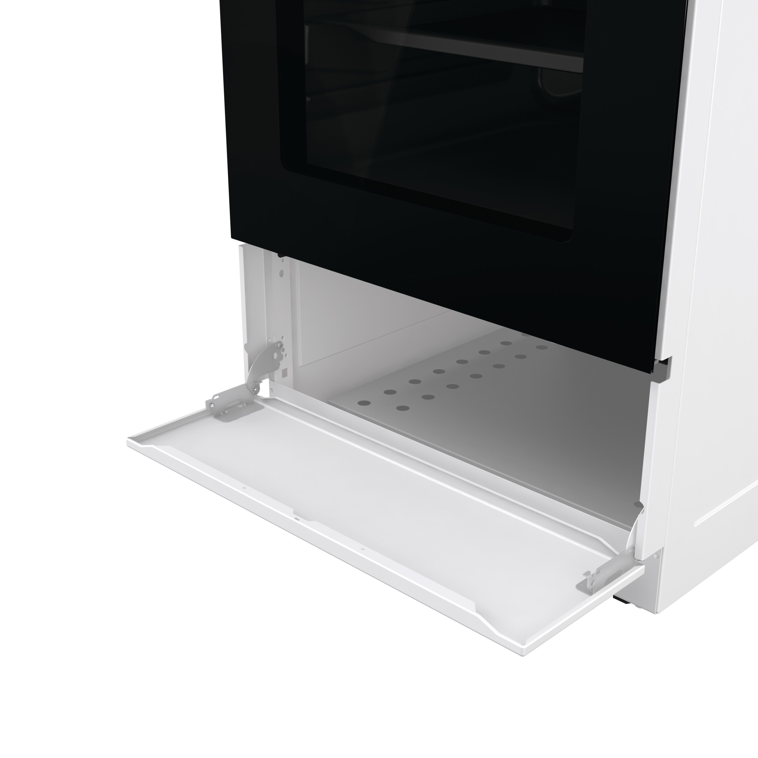 Obzvláště velký a hluboký úložný prostor ve spodní části sporáku poskytuje místo pro uložení většího hrnců, pekáčů nebo kuchyňského náčiní – s tímto pohodlným úložným řešením máte vše, co potřebujete, po ruce.