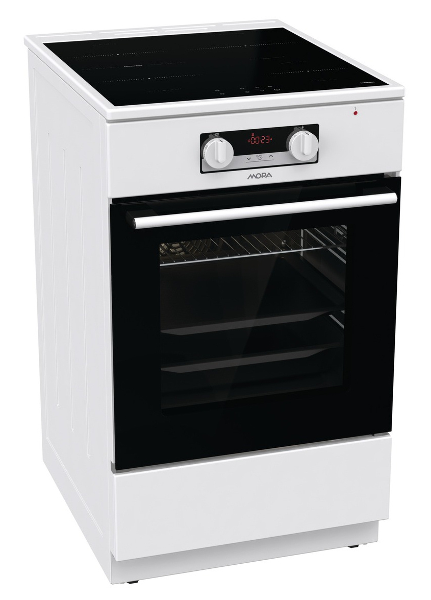 Indukční sporák I 8688 BW v klasickém bílém provedení se sklokeramickou indukční deskou a multifunkční troubou energeticky spadá do úsporné třídy „A“ a potěší užitným objemem trouby 70 l. Varná deska se dotykově ovládá a umožňuje spojit dvě levé samostatné varné zóny do jedné jen jedním dotykem. Perfektní řešení pro extra velké nádobí. Indukční zóny zahřívají pouze dno nádoby a z důvodu nízké teploty povrchu desky nedojte k připálení, navíc se deska velmi snadno čistí. Indukční vaření je nejenom rychlé, úsporné, ale i velmi bezpečné. Díky digitálnímu časovému spínači s hodinami budete mít přesnou kontrolu nad připravovaným jídlem. Trouba 70 l trouba je vybavená 11 pečicími programy, které jsou navržené přesně podle potřeb konkrétních jídel. Vykouzlíte například výbornou pizzu jako z italské restaurace (program Pizza), pomalu upečete pečínku a efektivně rozmrazíte hotové porce jídla. Pokud si rádi pochutnáváte na hranolkách nebo kuřecích nugetách, ale nedopřáváte si je tak často kvůli vysoké kalorické hodnotě, můžete také zkusit program pro horkovzdušné fritování bez tuku. Hotovky většinou volíme tehdy, když nás tlačí čas. Se speciálním programem pro hotová a mražená jídla ho ušetříte ještě víc, protože si připravíte chutný oběd rychleji, bez nutnosti předehřívání trouby. Výsledek však bude dokonalý, a tak si v klidu vychutnáte třeba kuřecí nugety, lasagne, hranolky nebo croissanty. Zvykli jste si, že předehřátí trouby trvá celou věčnost? Na to teď zapomeňte. Tato trouba se předehřeje na 200 ˚C do 5 minut, což je mnohem rychleji, než bývá zvykem. Nové bezpečné závěsy dvířek zaručují bez Vaší asistence velmi tiché a šetrné zavírání dvířek trouby. Pro zvýšení komfortu obsluhy je trouba vybavená teleskopickým výsuvem, které umožní bezpečnou manipulaci s připravovaným jídlem, aniž byste ho museli z trouby vytáhnout. Ve spodní části sporáku je praktický úložný prostor, do kterého snadno uložíte příslušenství v podobě roštu, mělkého plechu a MAXI pekáče XXL o objemu až 8 l. Perfektní vyčištění vnitřního prostoru po každém pečení zajistí funkce ECO CLEAN, díky které odstraníte i větší nečistoty bez nutnosti použít čisticí prostředek.