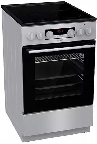 Energetická třída A, rozměry VxŠxH v mm (850x500x594), hmotnost 40,4 kg, max. příkon 9100 W, sklokeramická deska, 4 plotýnky, 11 funkcí trouby, barva nerez, objem trouby 70 l