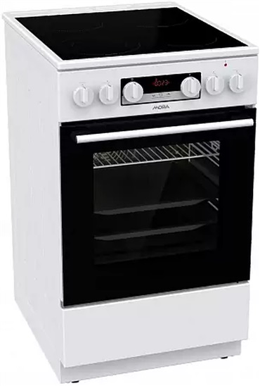 Energetická třída A, rozměry VxŠxH v mm (850x500x594), hmotnost 40,4 kg, max. příkon 9100 W, kruhové těleso, 4 plotýnky, objem trouby 70 l, 11 funkcí trouby, sklokeramická deska, bílá barva