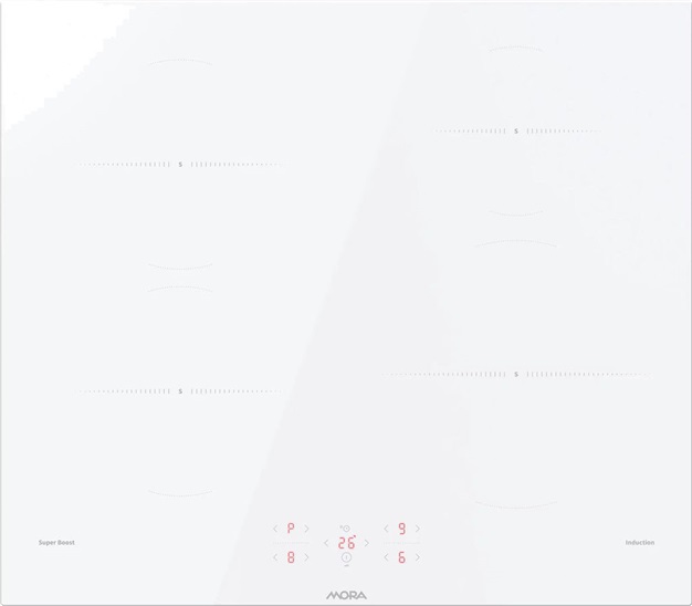 Indukční vestavná sklokeramická deska MORA VDIT 65D CW v moderním vílém provedení s praktickými broušenými hranami, díky čemuž ji lze jednoduše zabudovat i do roviny s pracovní deskou, disponuje 4 indukčními zónami, které zahřívají jen dno nádoby a z důvodu nízké teploty povrchu varné desky nedojde k připálení a deska se velmi snadno čistí. Indukční vaření je nejen rychlé, úsporné, ale také velmi bezpečné. Varná deska disponuje extra výkonem SuperBoost, který zvyšuje intenzitu ohřívání, pro zkrácení času, potřebného na ohřev. S funkcí Timer lze nastavit časovač vaření až na 99 minut a varná deska se po uplynutí času automaticky vypne. Díky dětské pojistce nyní nechat děti v kuchyni bez dozoru nebylo nikdy bezpečnější, protože tato funkce jim brání plotýnku zapnout.