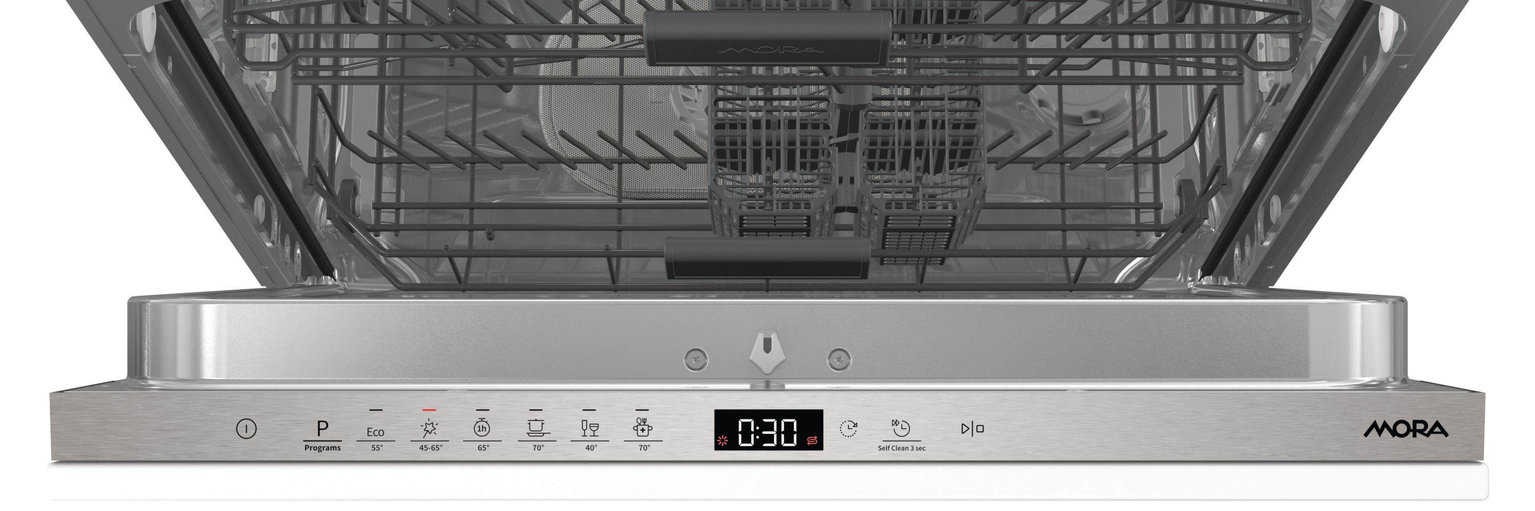 Vestavná plně integrovaná myčka MORA IM 643C3 v úsporné energetické třídě C je vhodná i do větších rodin, jelikož je do ní možné umístit až 14 jídelních sad najednou. Je vybavená dvěma koši a příborovým košíkem. Skrytý ovládací panel je opatřen dotykovým ovládáním s displejem a mnoha praktickými funkcemi, jako je například RychléMytí, které umožňuje zkrátit délku vybraných programů. Zvolíte-li funkci SušeníPlus, po ukončení programu se automaticky pootevřou dvířka, aby tak unikla pára a následný sušicí cyklus byl efektivnější a energeticky úsporný. Energii pomáhá šetřit i možnost připojení přímo na teplou vodu pomocí speciální hadice, odolávající vysokým teplotám. Samozřejmostí je úsporný ECO Program nebo AUTO Program, který sám zvolí optimální parametry mytí. Praktický je i odložený start až o 24 hodin. Myčka má navíc praktický samočistící filtr, a tak automaticky odstraní zbytky mastnoty a jídla ve filtru a zamezí nesprávnému chodu spotřebiče. Má také automatický program pro čištění celého vnitřku myčky včetně ramen a trysek. Se systémem AquaStop se nemusíte obávat nemilého překvapení v podobě vytopení.