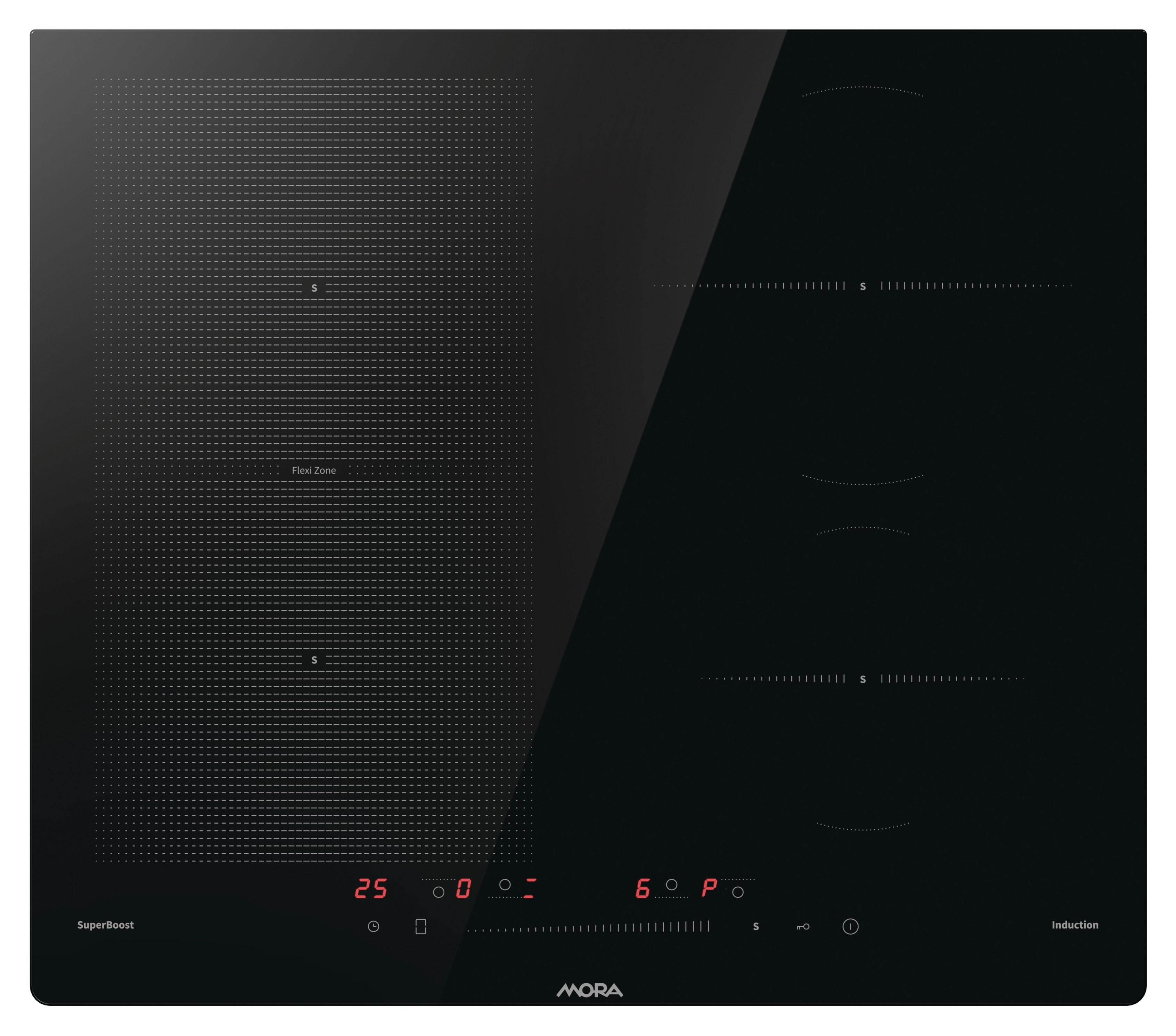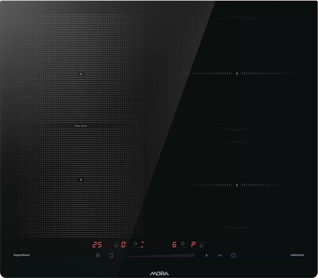 Indukční vestavná sklokeramická deska MORA VDIS 653 C s praktickými broušenými hranami, díky čemuž ji lze jednoduše zabudovat i do roviny s pracovní deskou, disponuje 4 indukčními zónami, které zahřívají jen dno nádoby a z důvodu nízké teploty povrchu varné desky nedojde k připálení a plotna se velice snadno čistí. Nabízí taky maximální flexibilitu a univerzálnost, pokud jde o počet, velikost nebo tvar nádobí – od velmi malých až po velké, včetně libovolných tvarů. Díky speciální oktagónové zóně FlexiZone můžete spojit dvě levé varné zóny nad sebou a vytvořit tak prostor pro několik malých hrnců či jeden velký hrnec nebo pekáč. Indukční vaření je nejen rychlé, úsporné, ale také velmi bezpečné. Varná deska disponuje extra výkonem SuperBoost, který zvyšuje intenzitu ohřívání, pro zkrácení času, potřebného na ohřev. S funkcí Timer lze nastavit časovač vaření až na 99 minut a varná deska se po uplynutí času automaticky vypne. Doplňkem je tzv. kuchyňská minutka TimeMinutes, která je nezávislá na varných zóny, takže po uplynutí nastaveného času vás jen upozorní speciální zvuk. Díky dětské pojistce nyní nechat děti v kuchyni bez dozoru nebylo nikdy bezpečnější, protože tato funkce jim brání plotýnku zapnout.