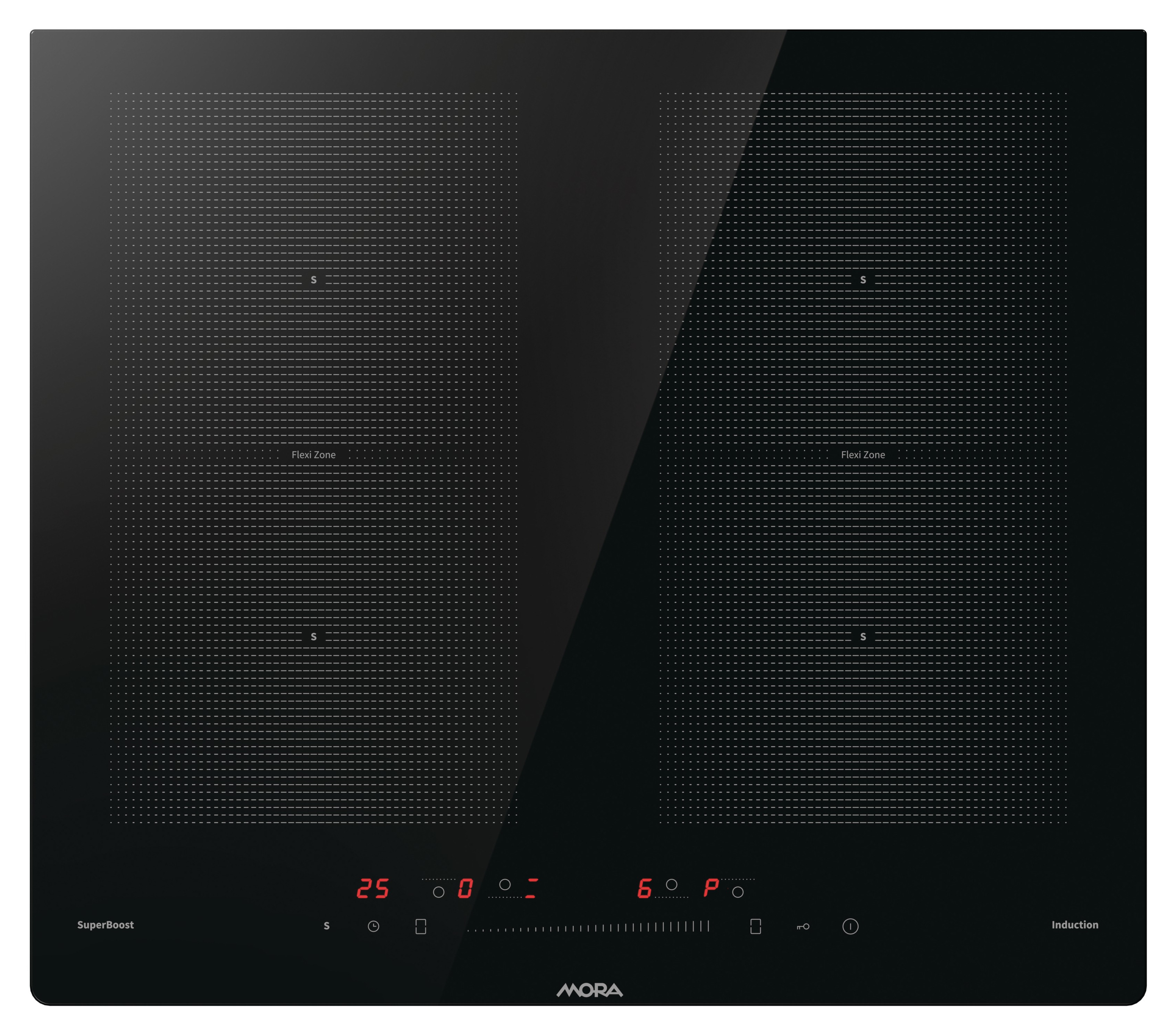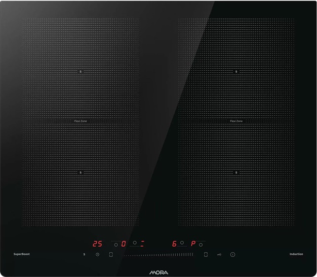 Indukční vestavná sklokeramická deska MORA VDIT 654 C s praktickými broušenými hranami, díky čemuž ji lze jednoduše zabudovat i do roviny s pracovní deskou, disponuje 4 indukčními zónami, které zahřívají jen dno nádoby a z důvodu nízké teploty povrchu varné desky nedojde k připálení a plotna se velice snadno čistí. Nabízí taky maximální flexibilitu a univerzálnost, pokud jde o počet, velikost nebo tvar nádobí – od velmi malých až po velké, včetně libovolných tvarů. Díky speciálním oktagónovým zónám FlexiZone můžete spojit dvě varné zóny nad sebou a vytvořit tak prostor pro několik malých hrnců či jeden velký hrnec nebo pekáč. Indukční vaření je nejen rychlé, úsporné, ale také velmi bezpečné. Varná deska disponuje extra výkonem SuperBoost, který zvyšuje intenzitu ohřívání, pro zkrácení času, potřebného na ohřev. S funkcí Timer lze nastavit časovač vaření až na 99 minut a varná deska se po uplynutí času automaticky vypne. Doplňkem je tzv. kuchyňská minutka TimeMinutes, která je nezávislá na varných zóny, takže po uplynutí nastaveného času vás jen upozorní speciální zvuk. Díky dětské pojistce nyní nechat děti v kuchyni bez dozoru nebylo nikdy bezpečnější, protože tato funkce jim brání plotýnku zapnout.