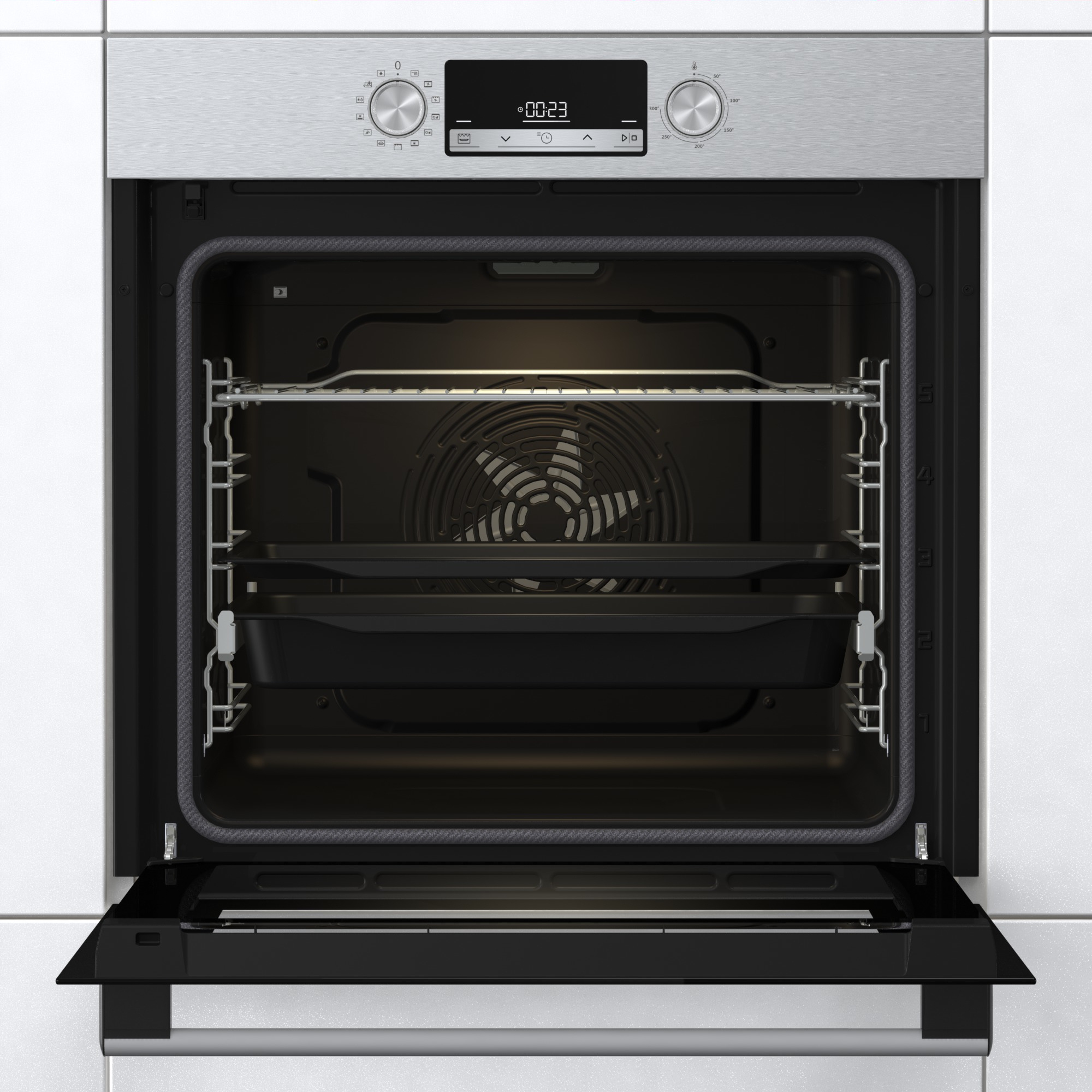 Občas vám to nedá a chtěli byste zjistit, jak se jídlu v troubě daří? Otevírat dvířka se ale nevyplácí, protože tak unikne mnoho tepla a nějaký čas trvá, než se trouba znovu vyhřeje na požadovanou teplotu. Proto je tato trouba vybavená skleněnými dvířky a kvalitním vnitřním osvětlením. Díky tomu můžete nakouknout dovnitř, kdykoli se vám zlíbí.