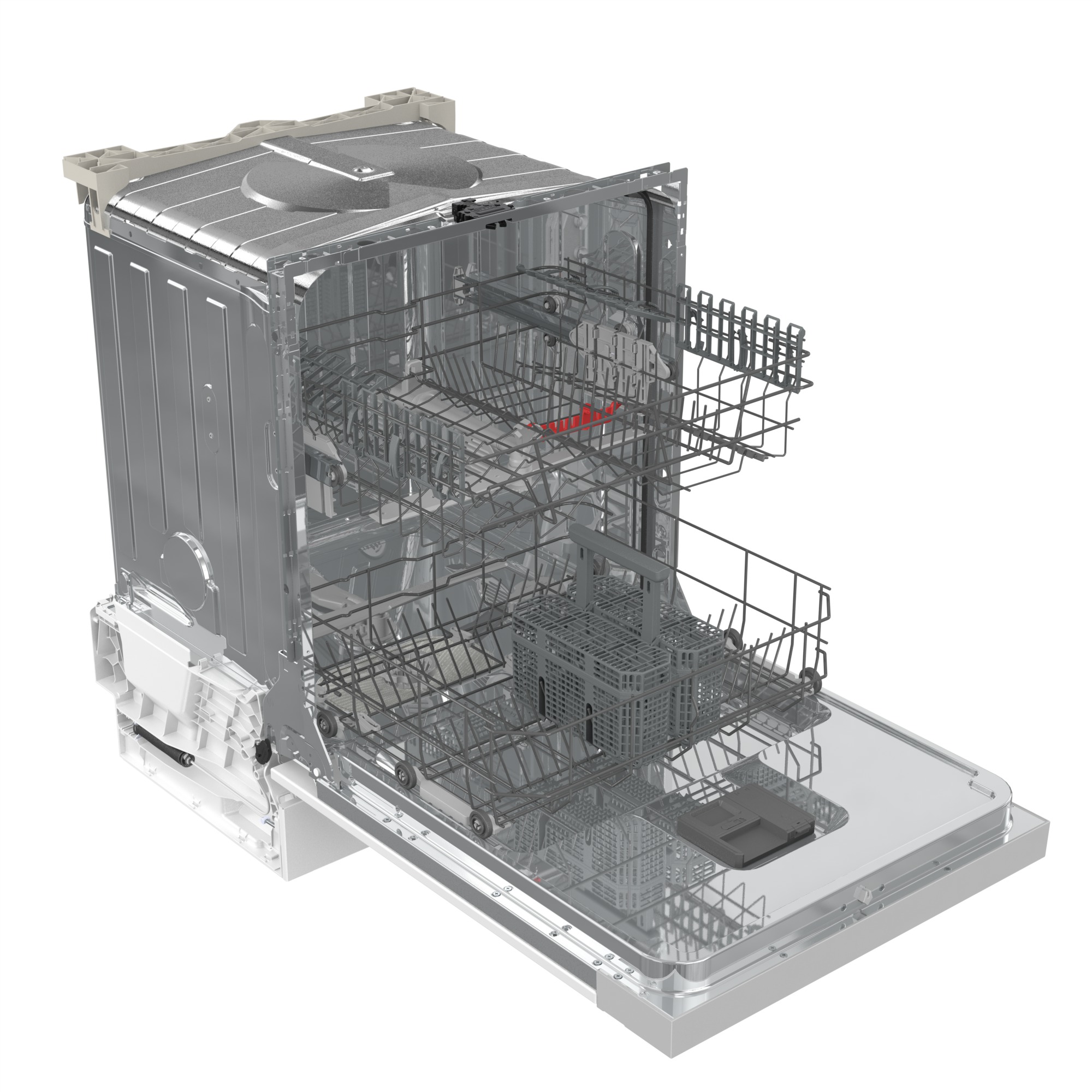 Koše jsou vybaveny zvýrazněnými pohyblivými prvky a přizpůsobitelným rozložením koše pro snadné nakládání. Skutečně jednoduchý systém nastavení výšky koše vám umožní umístit i ty největší hrnce a talíře. Držáky na talíře ve spodním koši lze snadno složit, aby poskytli více prostoru pro větší předměty. Na příbory je určena horní zásuvka, její boční panely lze dle modelu přenastavit nebo vyjmout podle toho, kolik prostoru potřebujete. Každý detail je pečlivě navržen tak, aby manipulace byla co nejjednodušší.
