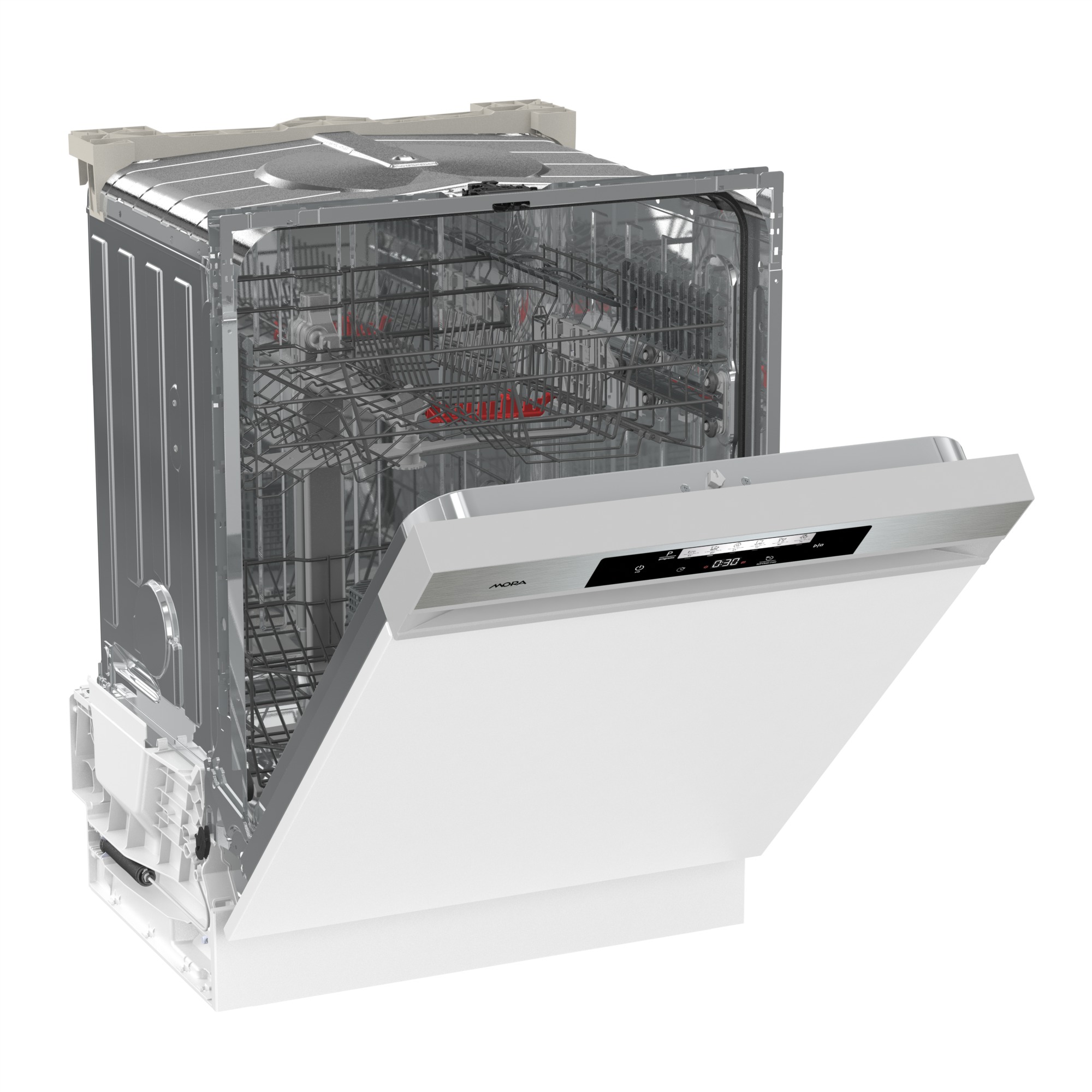 Myčky MORA s kapacitou až 16 jídelních souprav disponují 3 koši se zvýrazněnými pohyblivými prvky, díky kterým můžete jednoduše přizpůsobit interiér koše podle aktuálních potřeb. Horní koš můžete zvednout i při plném naložení, takže získáte prostor pro vložení i objemných hrnců, pekáčů nebo servírovacích podnosů. Příbory lze perfektně uspořádat v příborové zásuvce, kde se vzájemně nepoškrábou a mohou se dokonale vysušit.