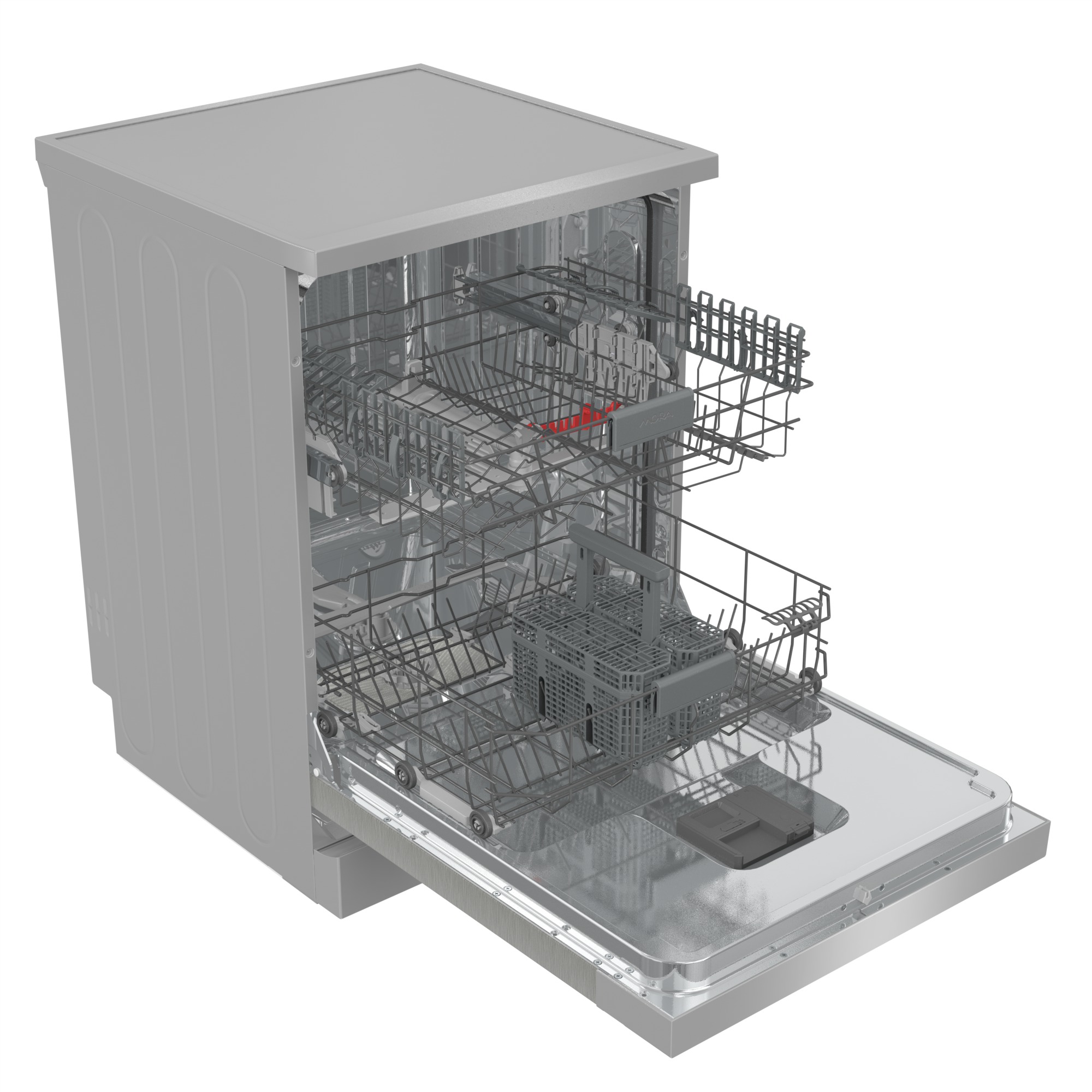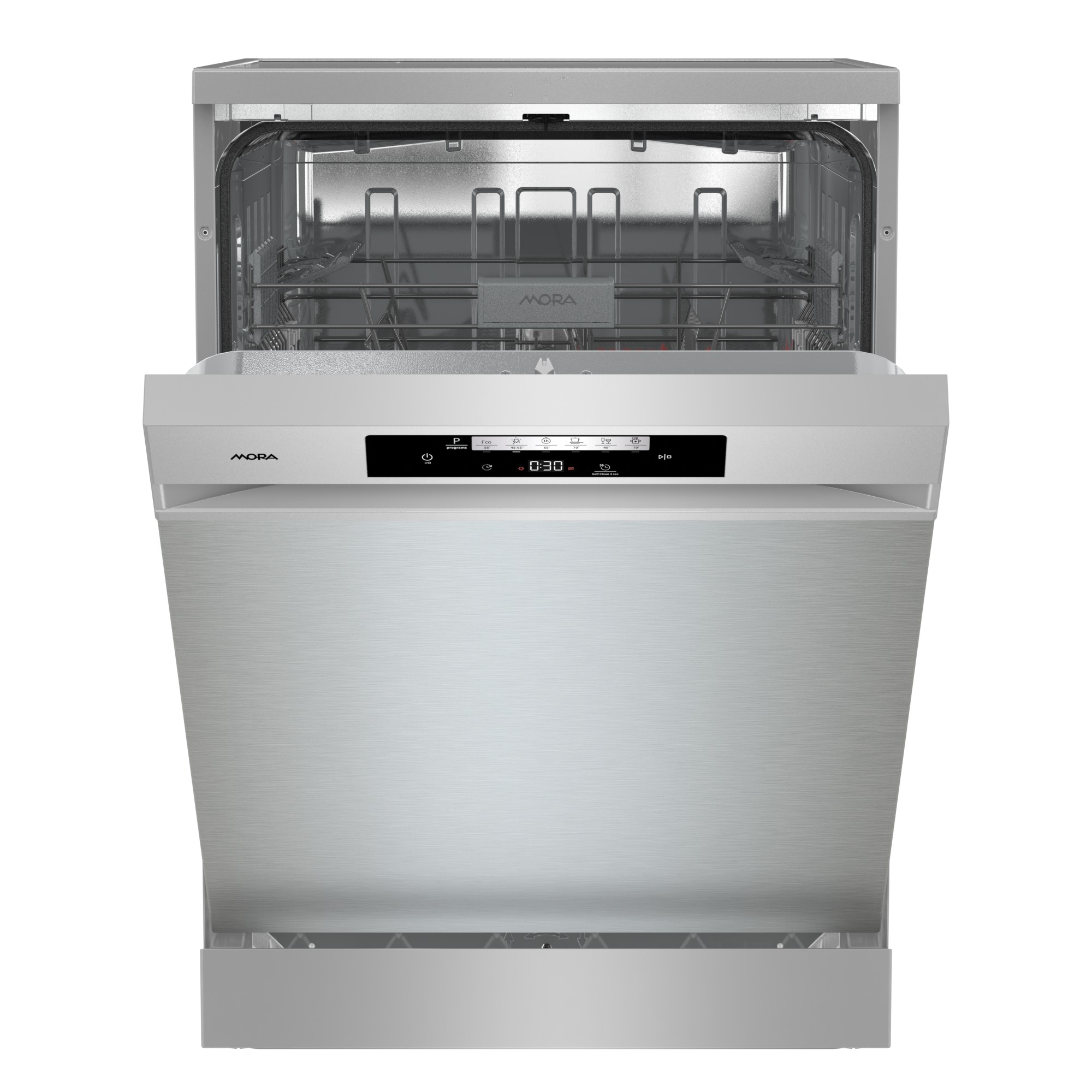 Volně stojící myčka Mora SM 643C3 X v úsporné energetické třídě C ve standardní šířce 60 cm má kapacitu 14 sad nádobí. Je vybavena dvěma koši a příborovým košíkem. Ovládací panel je opatřen dotykovým ovládáním s displejem. Praktická funkce RychléMytí umožňuje zkrátit délku vybraných programů. Zvolíte-li funkci SušeníPlus, po ukončení programu se automaticky pootevřou dvířka, aby tak unikla pára a následný sušicí cyklus byl efektivnější a energeticky úsporný. Samozřejmostí je úsporný ECO program nebo praktický odložený start, který umožňuje nastavení startu programu až do 24 hodin. Myčka má navíc praktický samočisticí filtr, který automaticky odstraní zbytky mastnoty a jídla ve filtru a zamezí nesprávnému chodu spotřebiče. Má také automatický program pro čištění celého vnitřku myčky včetně ramen a trysek. Se systémem AquaStop se nemusíte obávat nemilého překvapení v podobě vytopení.