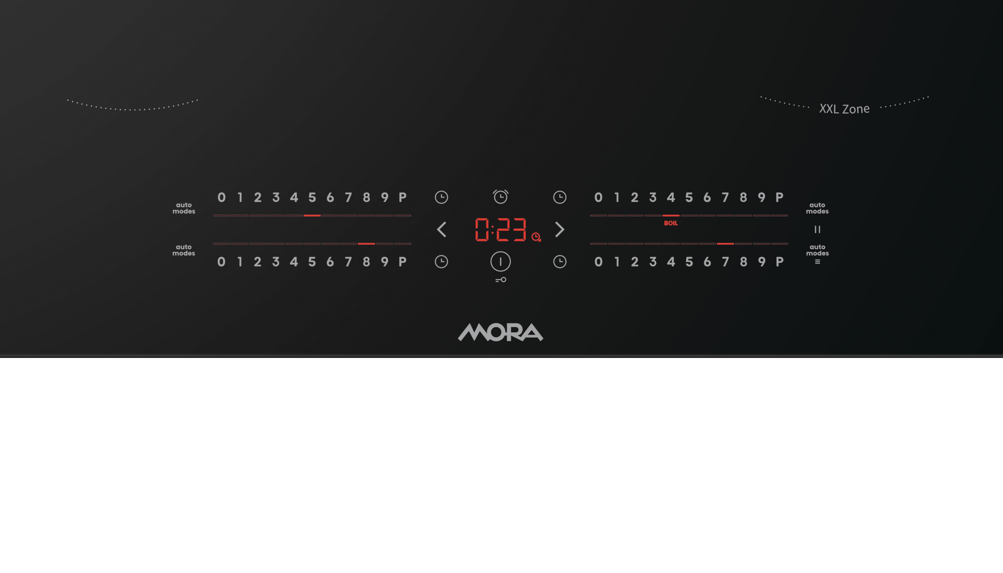 Ovládání varné desky MORA je maximálně intuitivní. Citlivé senzory umožňují plynulé nastavení výkonu jemným pohybem prstu v obou směrech. Každá zóna nabízí plnou kontrolu a přístup k chytrým funkcím. A díky hladkému povrchu se deska snadno čistí i udržuje.