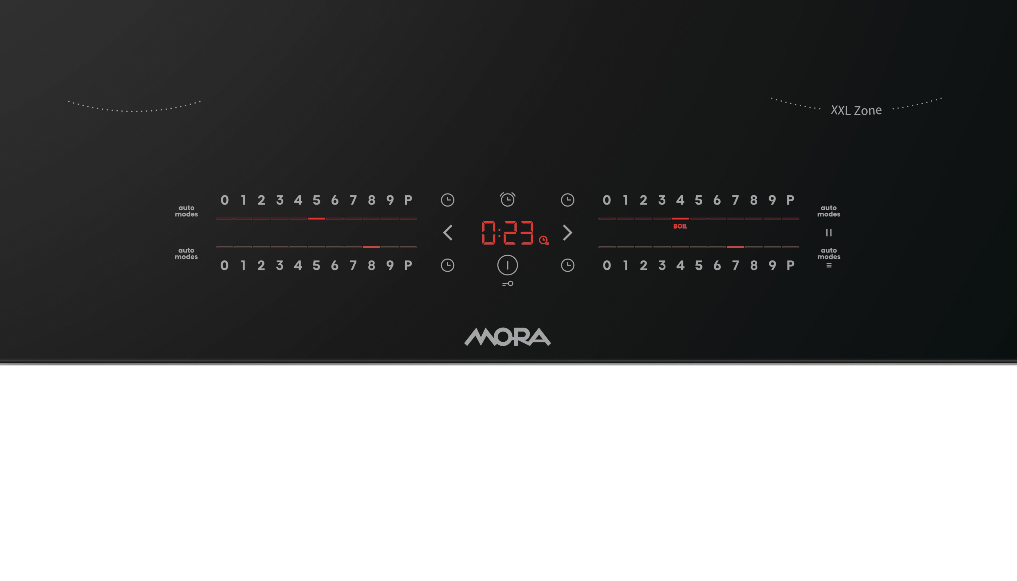 Ovládání varné desky MORA je maximálně intuitivní. Citlivé senzory umožňují plynulé nastavení výkonu jemným pohybem prstu v obou směrech. Každá zóna nabízí plnou kontrolu a přístup k chytrým funkcím. A díky hladkému povrchu se deska snadno čistí i udržuje.