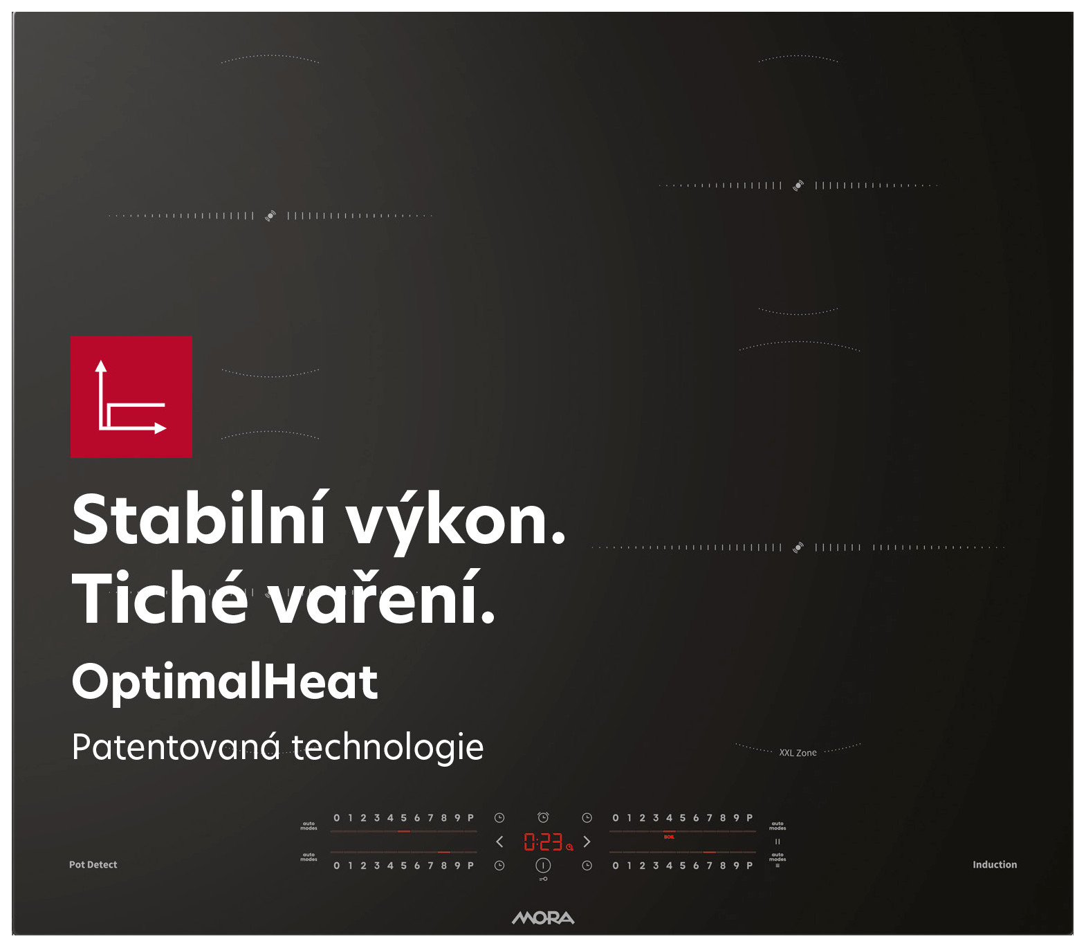 Představujeme novou generaci indukčních varných desek MORA s patentovanou technologií OptimalHeat System – pro tiché, stabilní a rovnoměrné vaření. MORA VDIS 655 X s elegantním nerezovým rámečkem nejen stylově doplní každou kuchyň, ale zároveň zachytí případně přeteklou tekutinu, aby se nedostala na pracovní plochu. Dotykové ovládání s podsvícenými posuvnými ovladači EasySlide je intuitivní a přesné. Čtyři varné zóny automaticky rozpoznají polohu nádoby už za 0,2 sekundy a s funkcí EasyTransfer můžete hrnce jednoduše přesouvat i s nastavenými parametry. Inteligentní programy neustále sledují teplotu a automaticky přizpůsobují výkon – pro dokonale uvařená jídla bez ztráty chuti. Praktické programy jako KeepWarm (70 °C) pro udržování tepla, EasyMelt (40–45 °C) pro jemné rozpouštění či automatický program na vaření těstovin vám usnadní každodenní vaření. Silný SuperBoost zajistí extra výkon, funkce Timer a minutka TimeMinutes dohlédnou na čas a funkce Pause umožní kdykoli přerušit vaření bez ztráty nastavení.