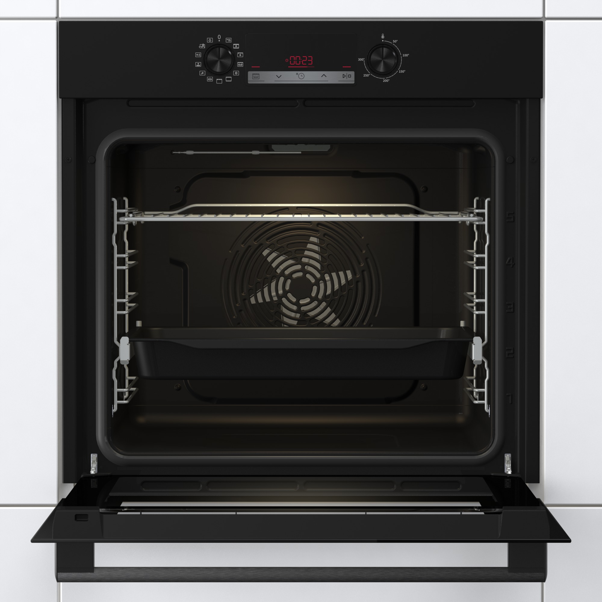 Tato elektrická trouba v elegantním provedení černého skla vám kromě tradičního pečení otevře dveře k dalším moderním tepelným úpravám pokrmu. Pokud si rádi pochutnáváte na hranolkách nebo kuřecích nugetách, ale nedopřáváte si je tak často kvůli vysoké kalorické hodnotě, můžete také zkusit program pro horkovzdušné fritování bez tuku. Dále je trouba vybavená 12 pečicími programy, které jsou navržené přesně podle potřeb konkrétních jídel. Vykouzlíte například výbornou pizzu jako z italské restaurace (program Pizza 300 °C), pomalu upečete pečínku, a efektivně rozmrazíte hotové porce jídla. Teleskopický rošt zabezpečí snadnější a bezpečnější manipulaci s nádobím, zatímco tiché zavírání a otevírání dvířek přinese komfort při každodenním provozu. Chytře rozmístěná topná tělesa a extra velký objem 77 l zaručují dokonale propečené a křupavé jídlo ze všech stran. Trouba vás zaujme jistě také variabilním rozpětím teploty od 50 do 300 °C. Perfektní vyčištění párou zajistí funkce ECO CLEAN, díky které odstraníte i větší nečistoty bez nutnosti použít čisticí prostředek. Trouba spadá do ekologické třídy A.